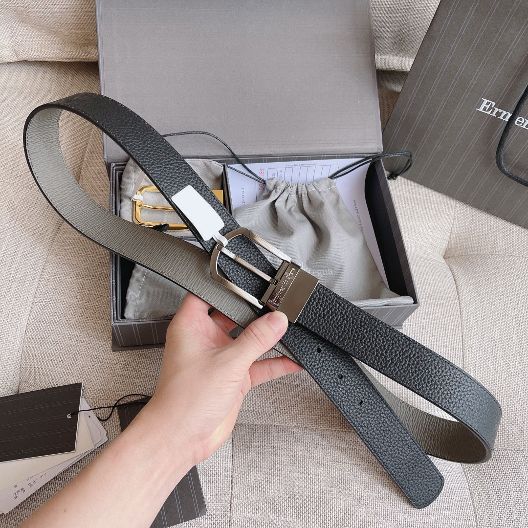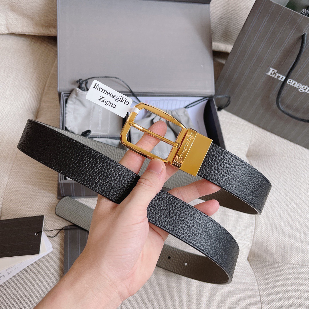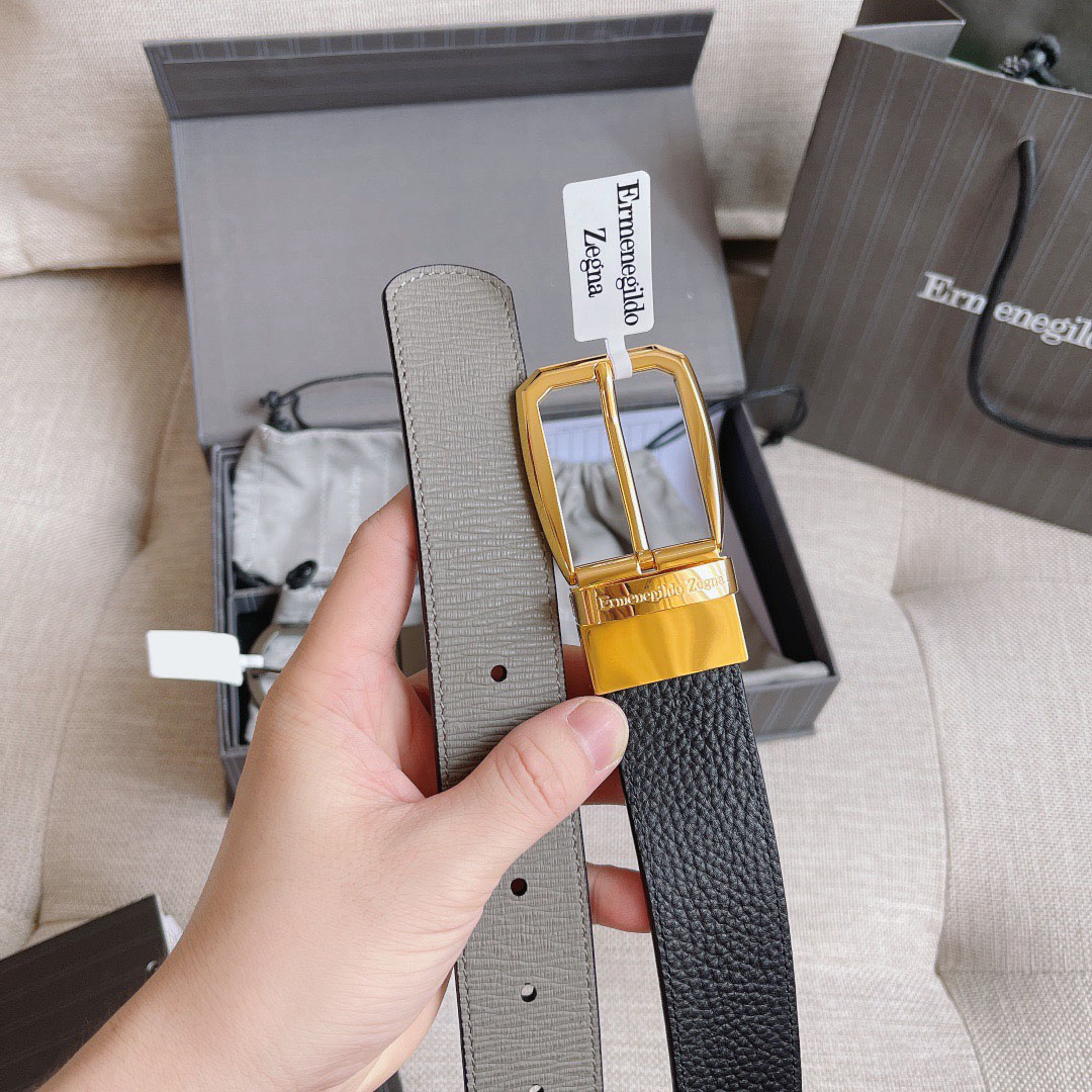 Двусторонний кожаный ремень Zegna Premium (длина 110 см, ширина 3.5 см)