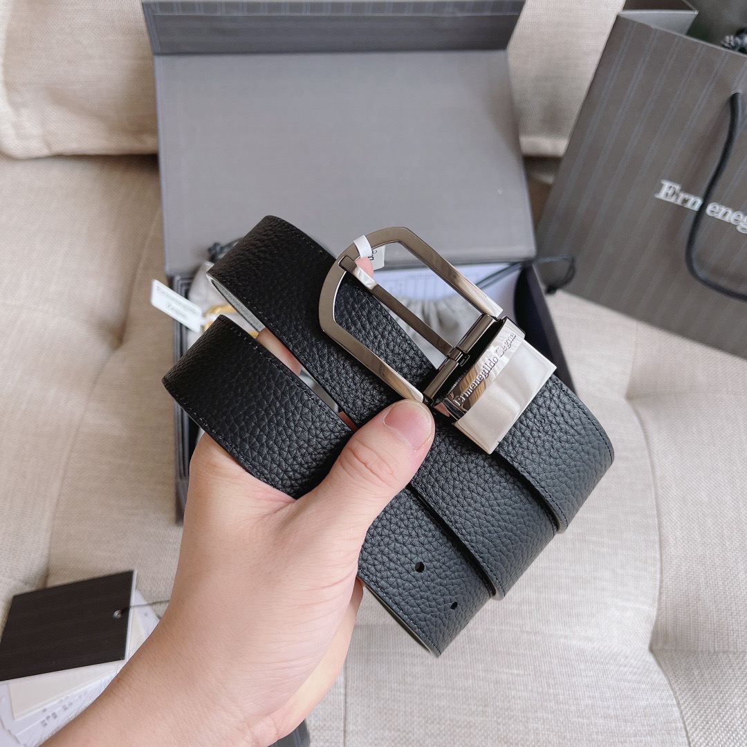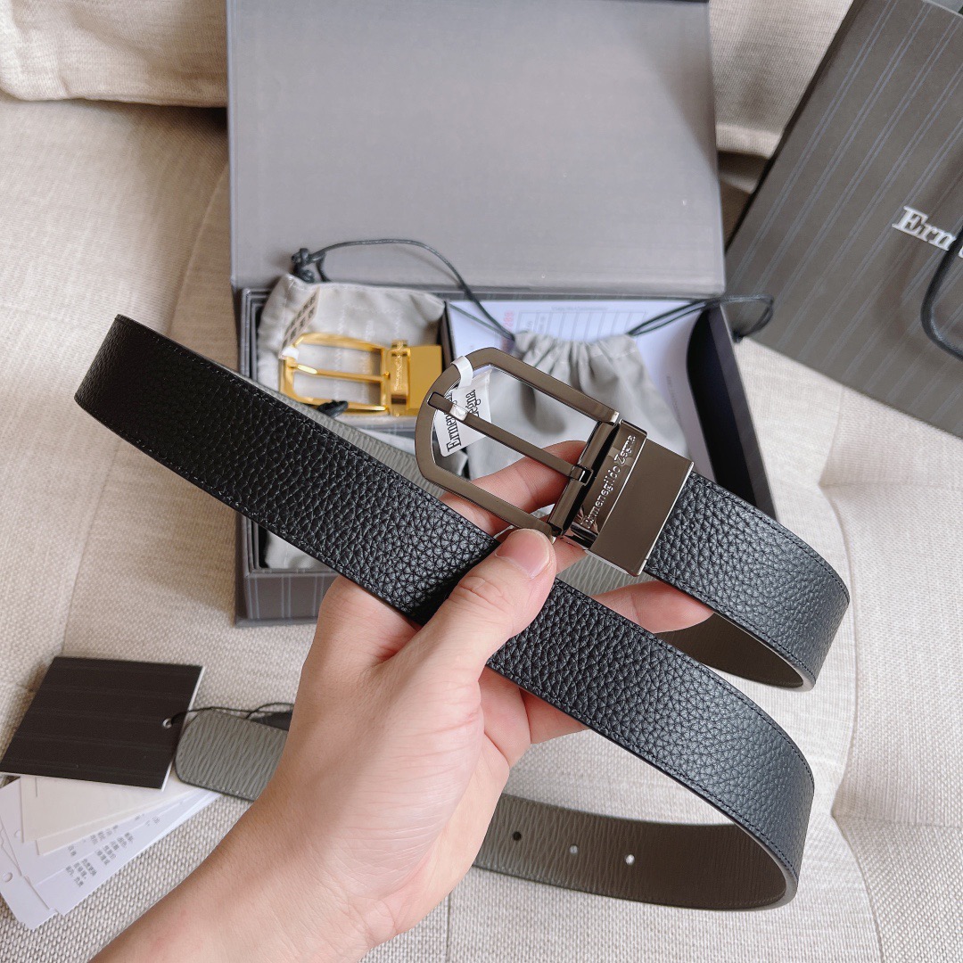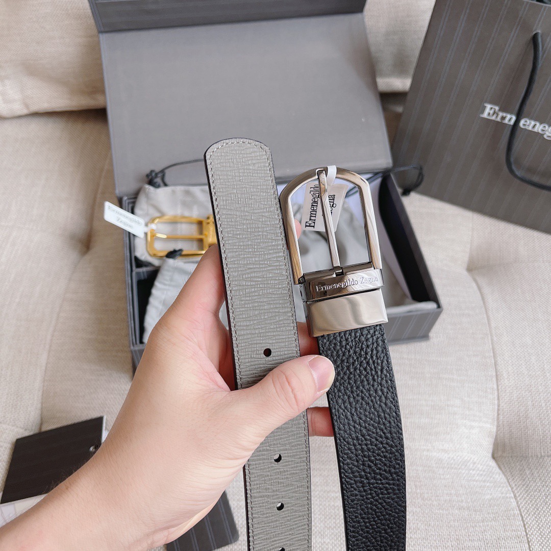 Двусторонний кожаный ремень Zegna Premium (длина 110 см, ширина 3.5 см)