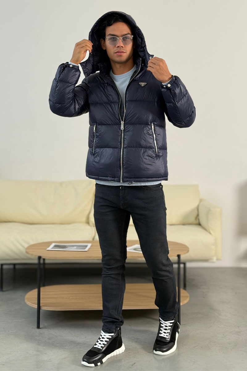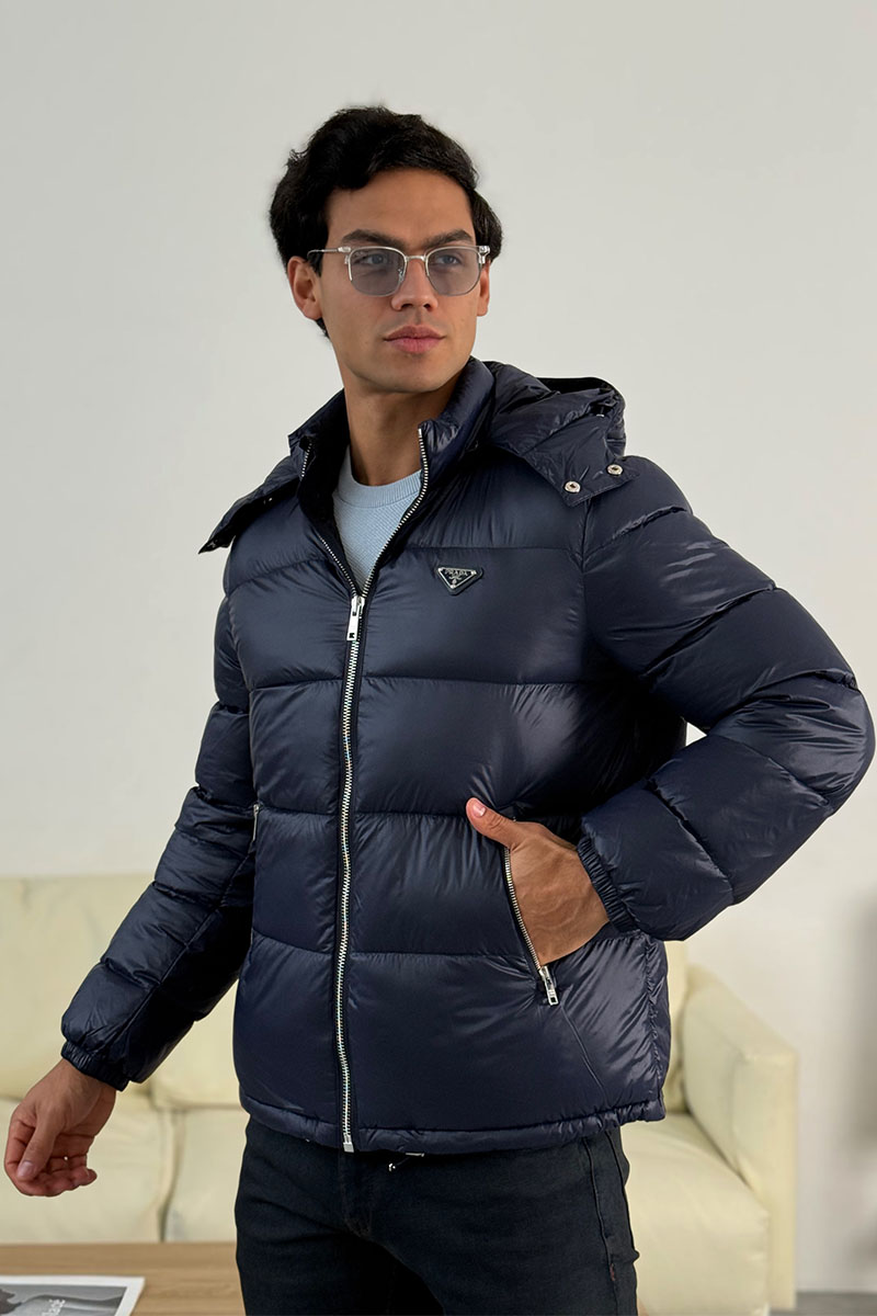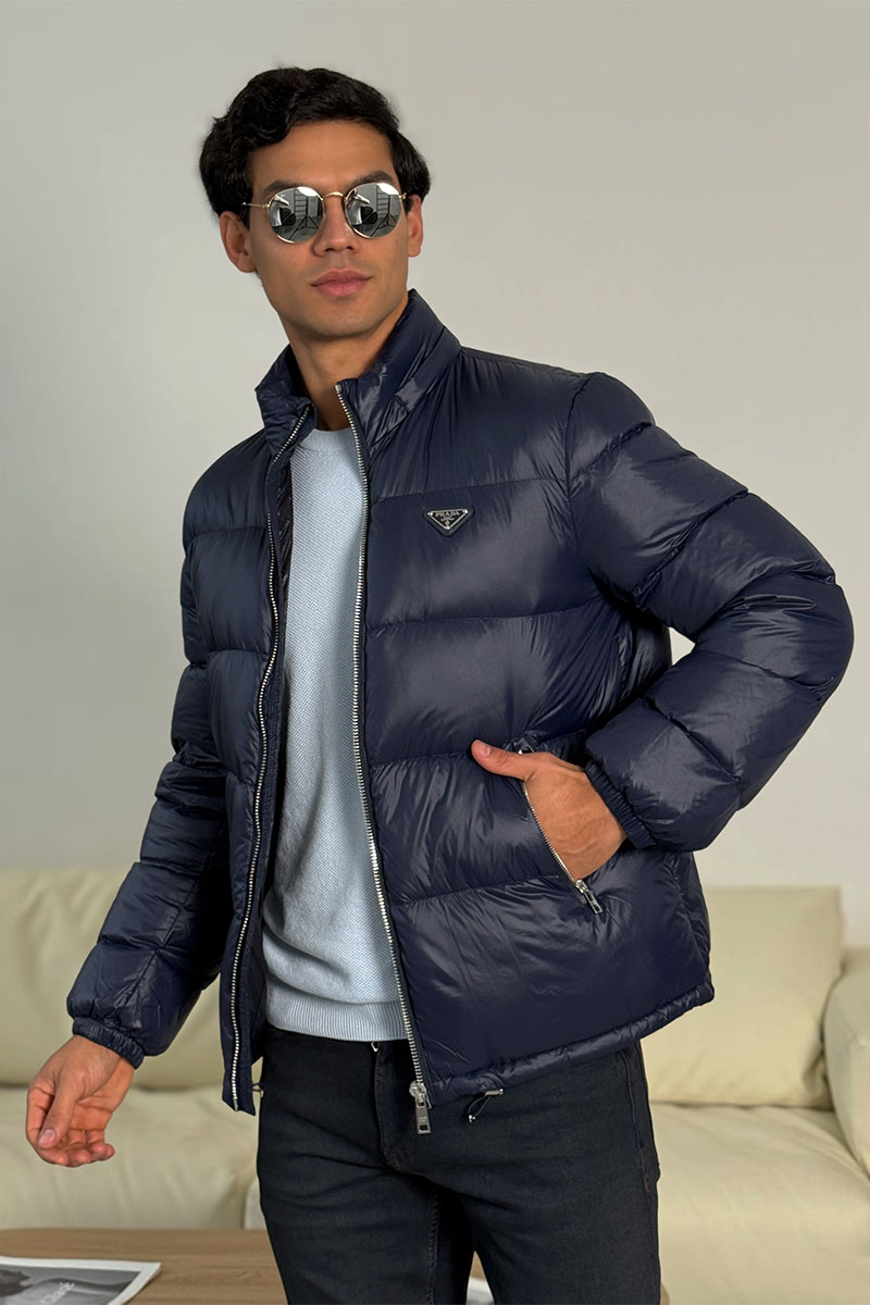 Мужской пуховик Prada logo-plaque - Blue