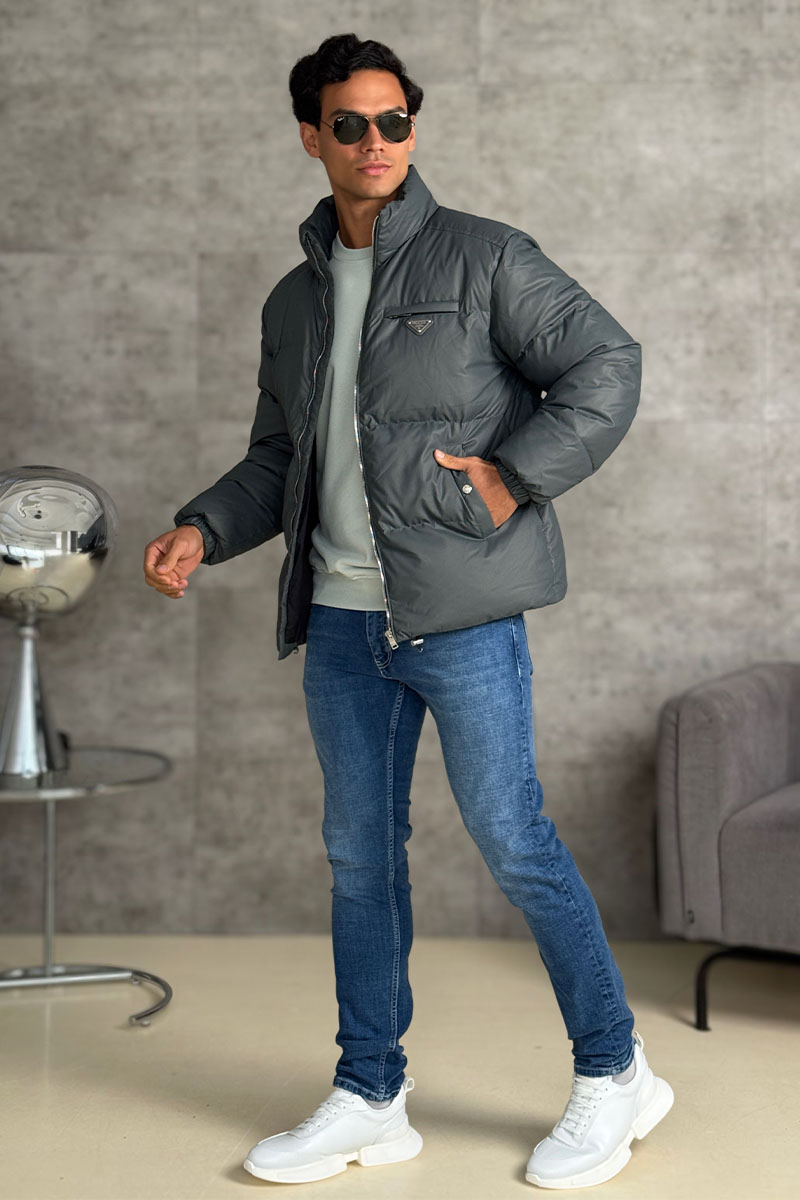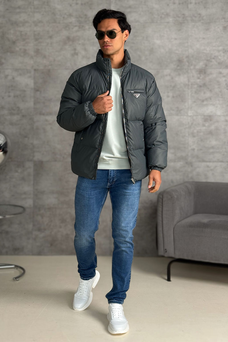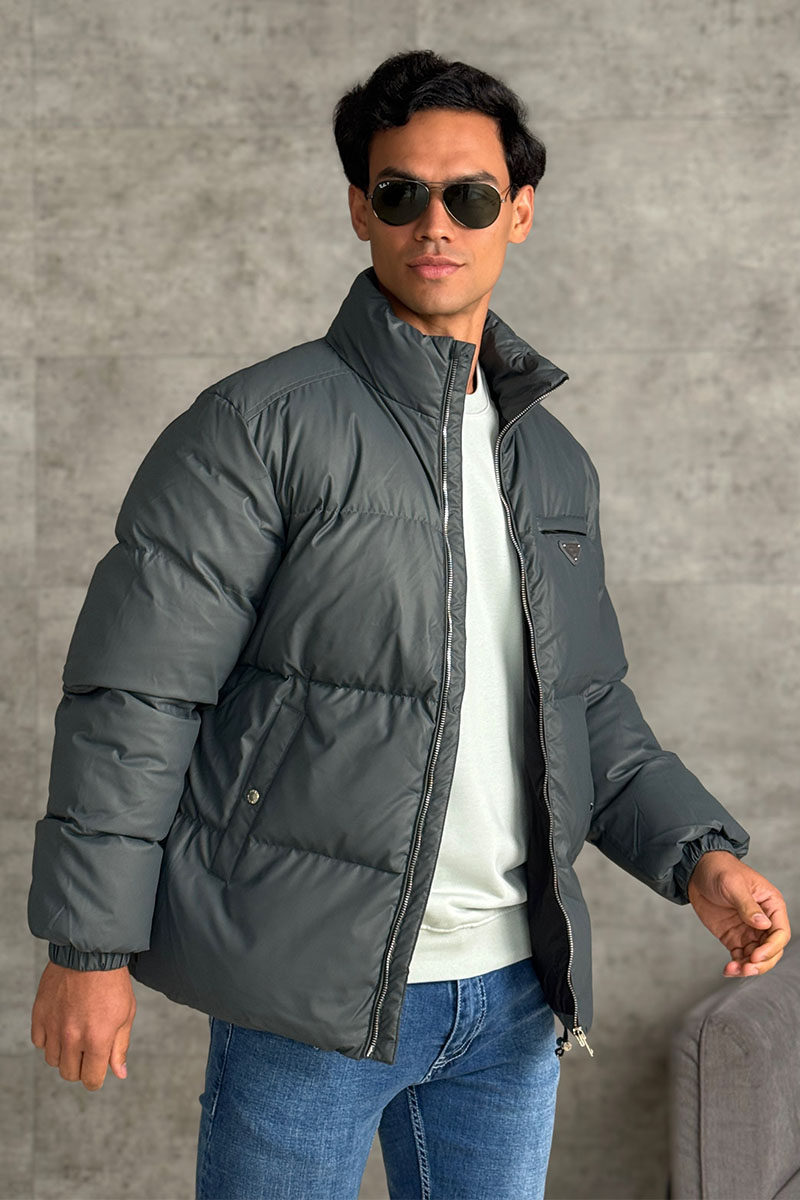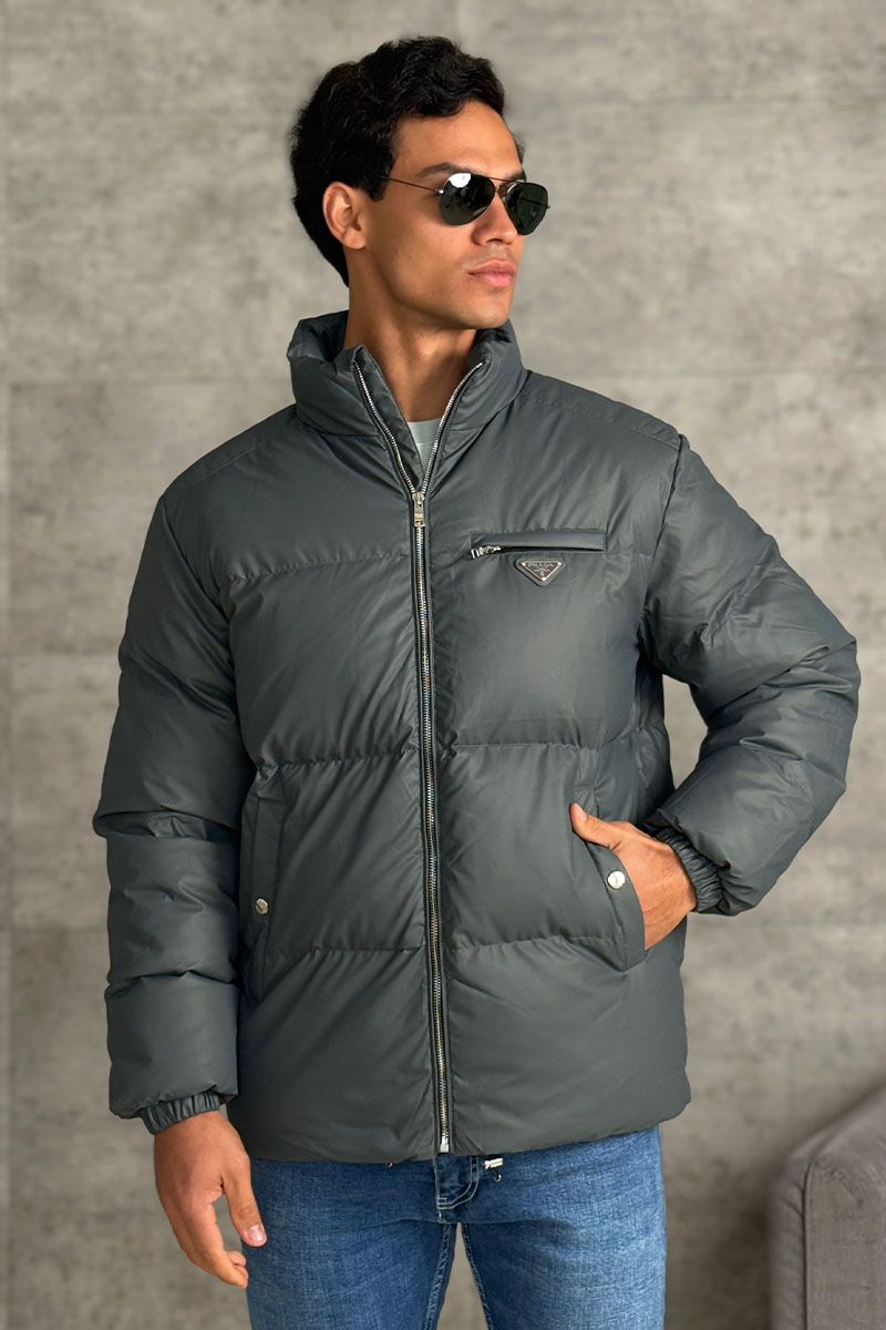 Мужской пуховик Prada logo-plaque - Grey