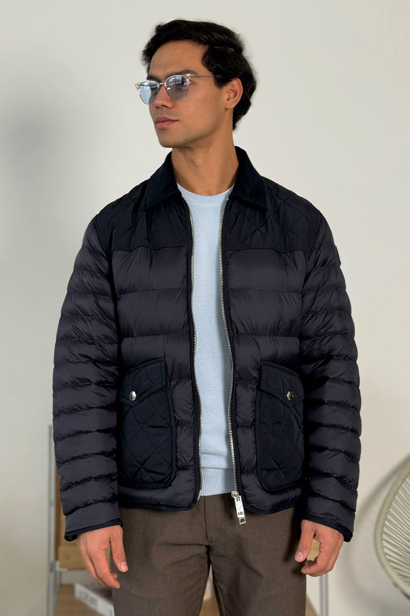 Тёмно-синяя пуховая куртка Burberry London England logo-patch