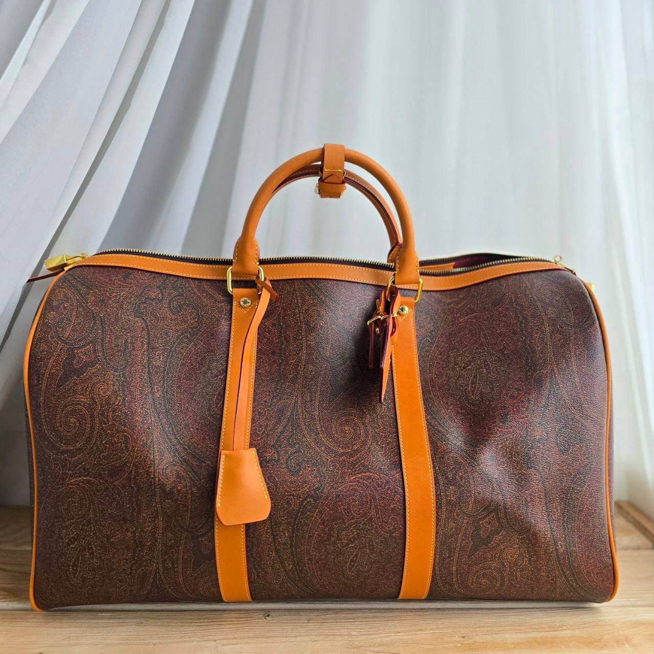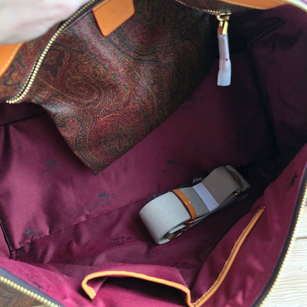 Кожаная дорожная сумка Etro с узором пейсли 50x28 см
