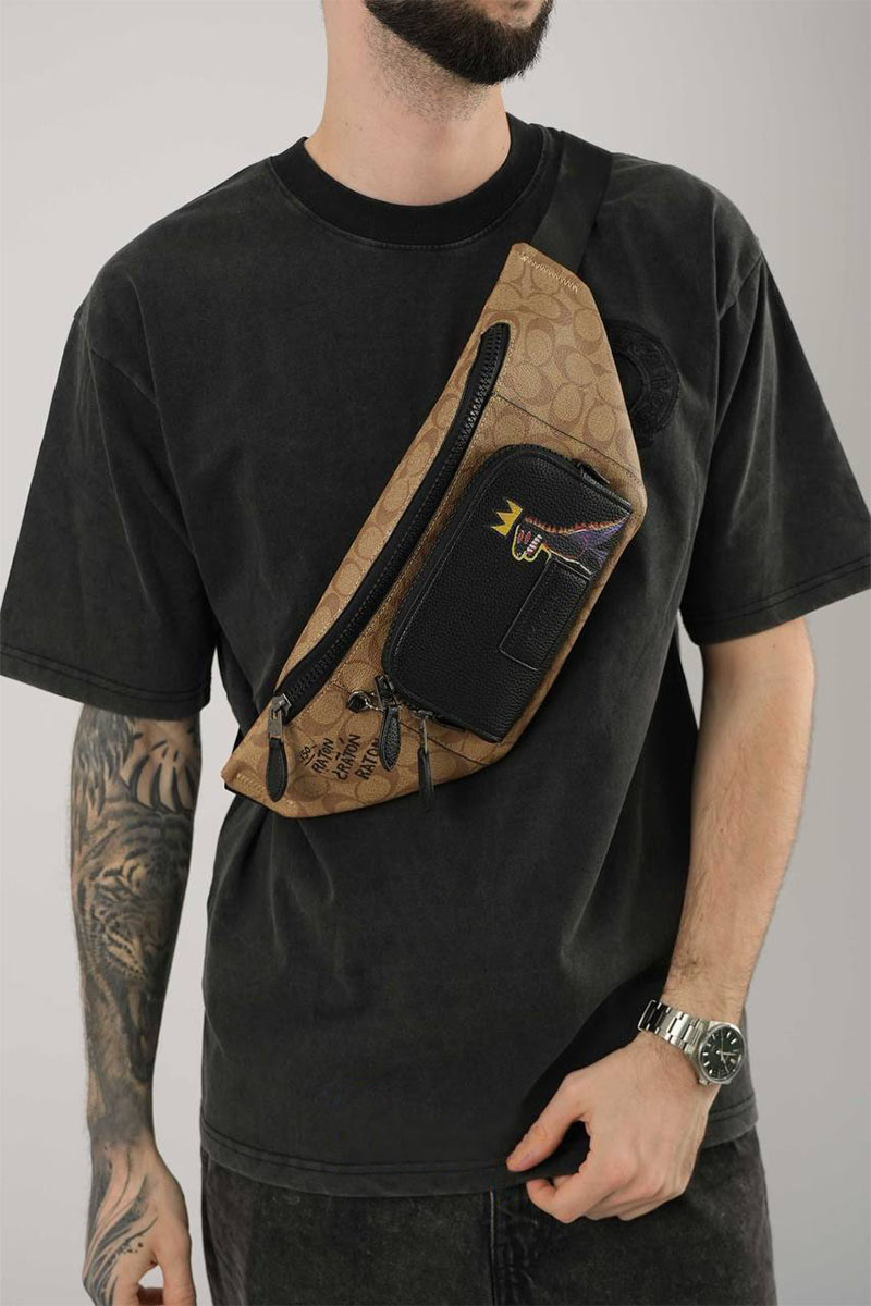Кожаная сумка на пояс Coach x Jean Michel Basquiat Track