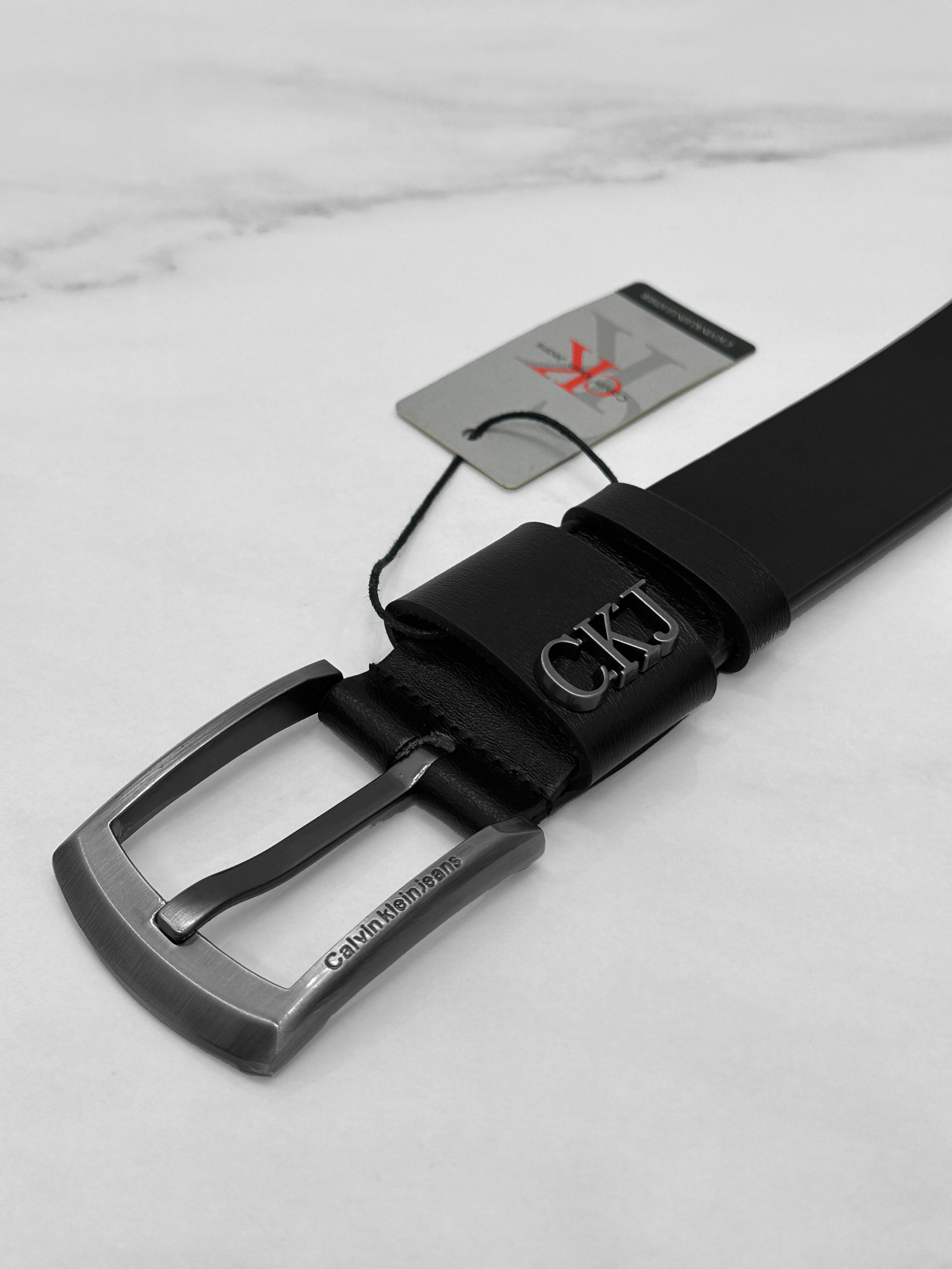 Мужской кожаный ремень Calvin Klein чёрного цвета