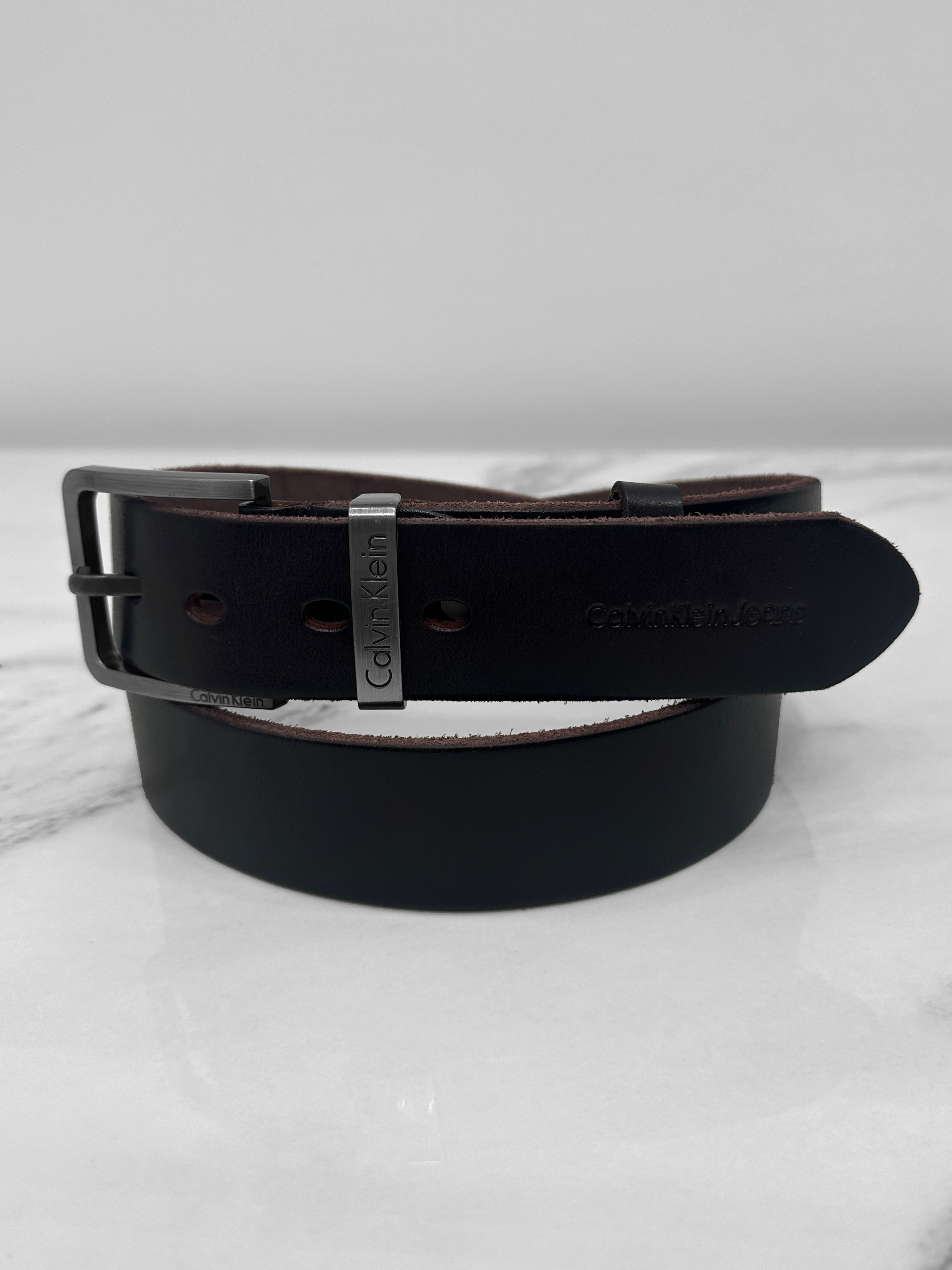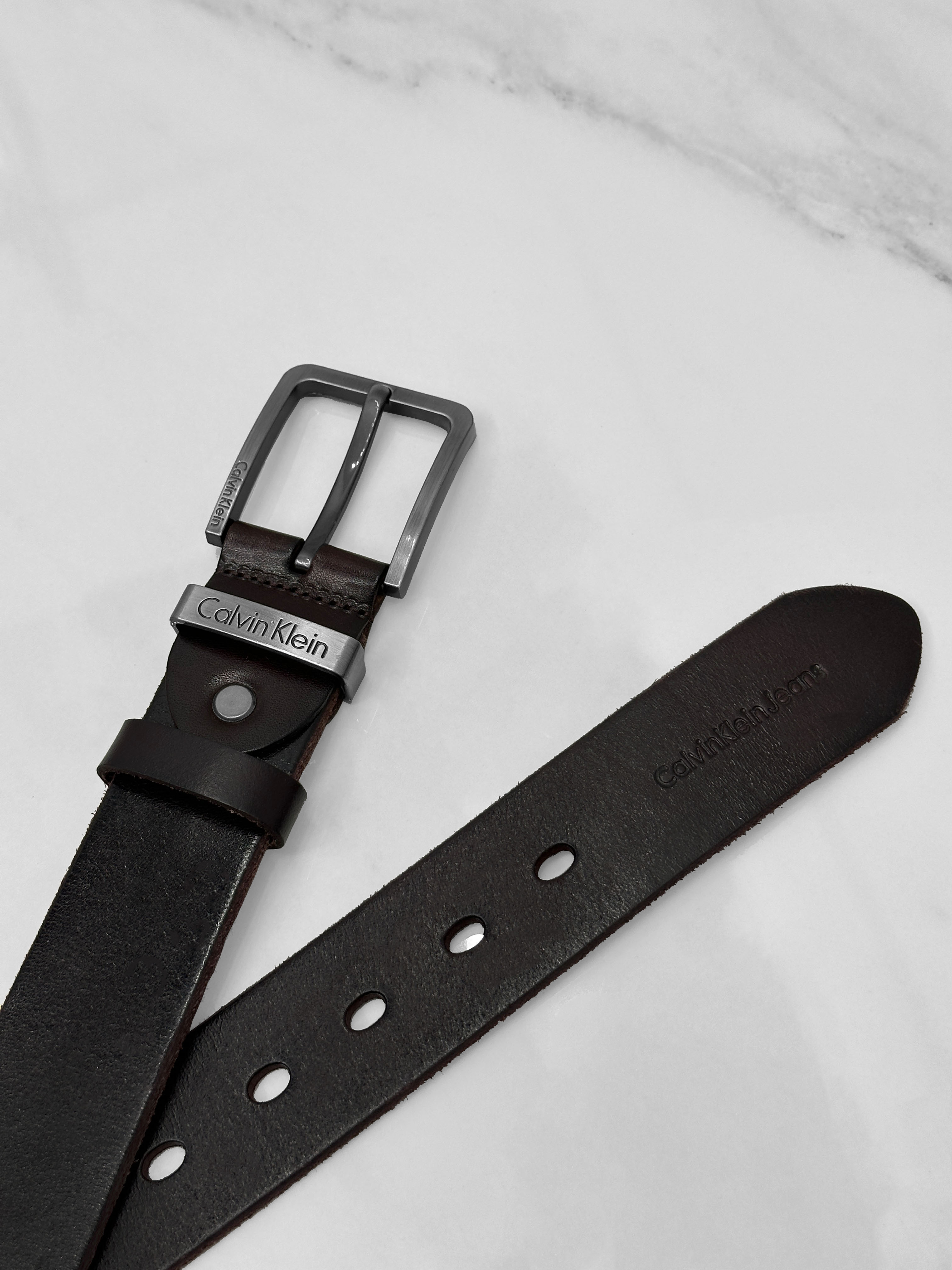 Мужской кожаный ремень Calvin Klein коричневого цвета