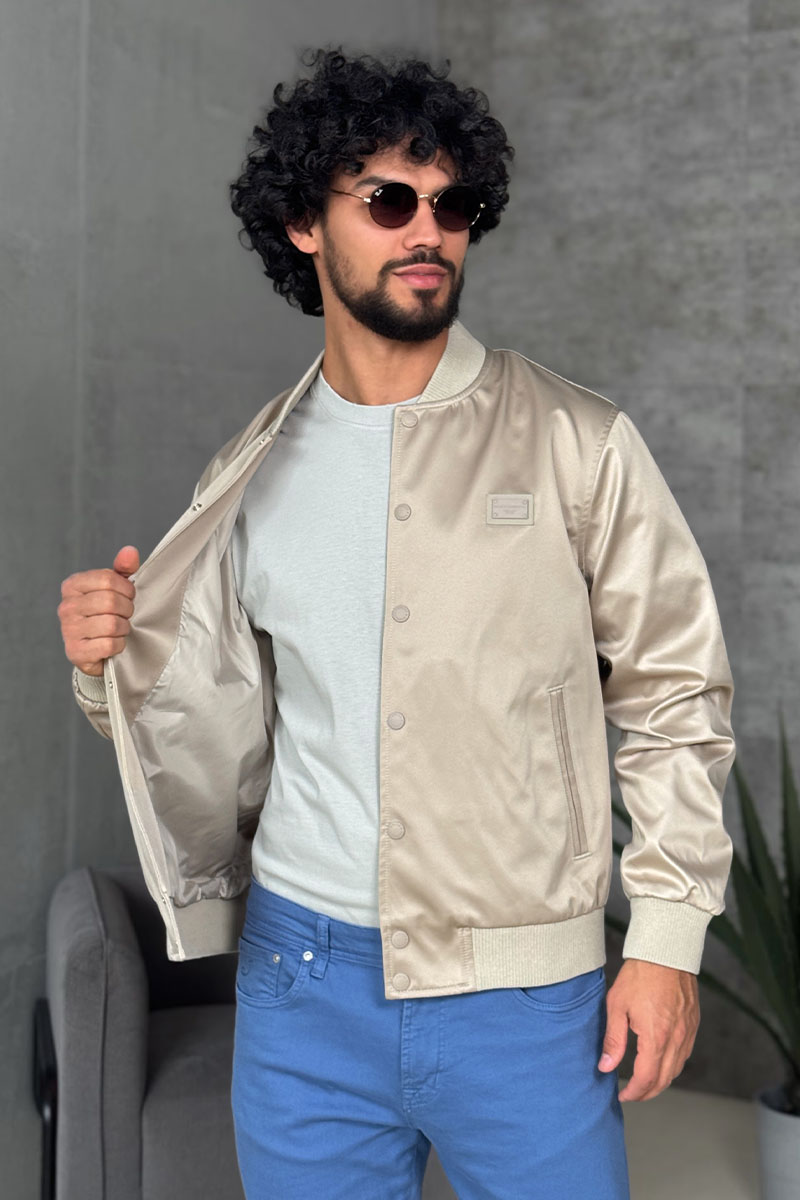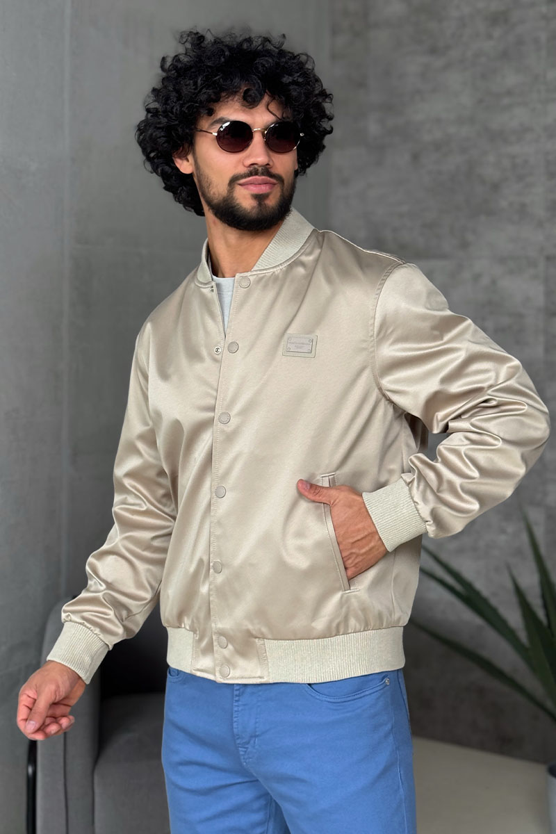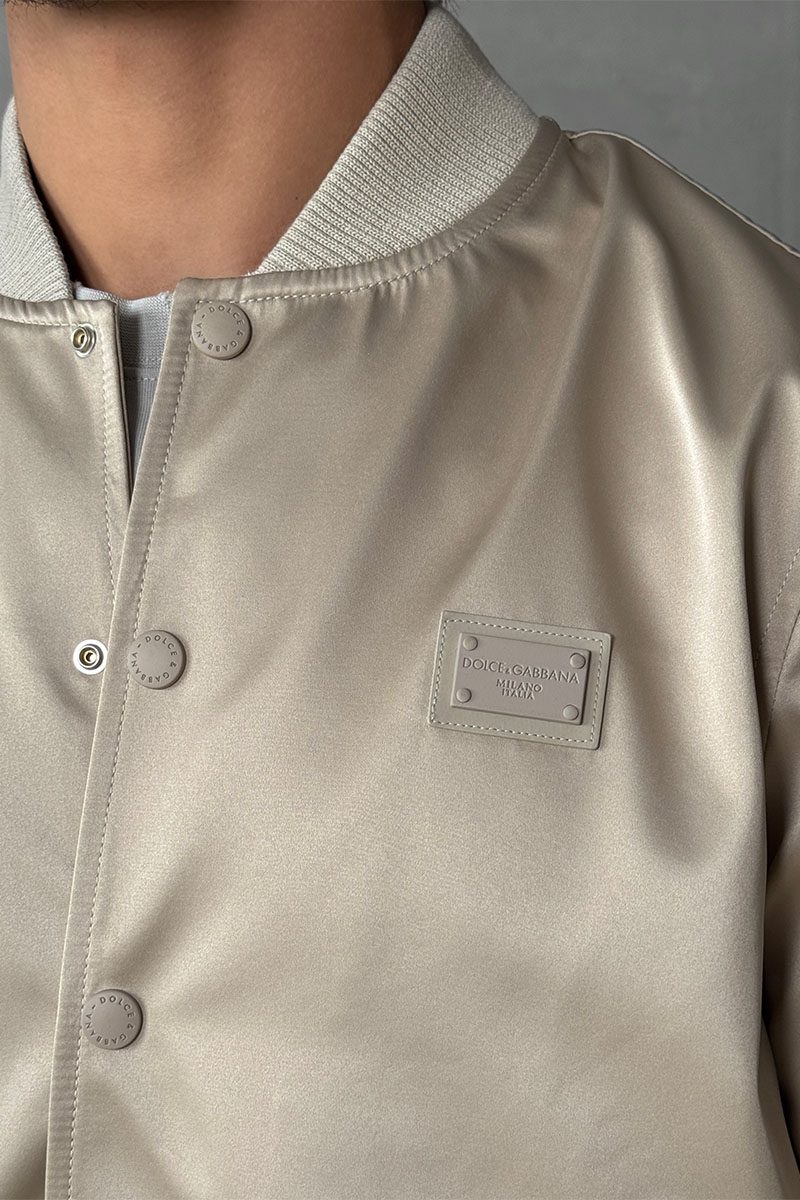 Мужской бежевый бомбер Dolce & Gabbana logo-plaque