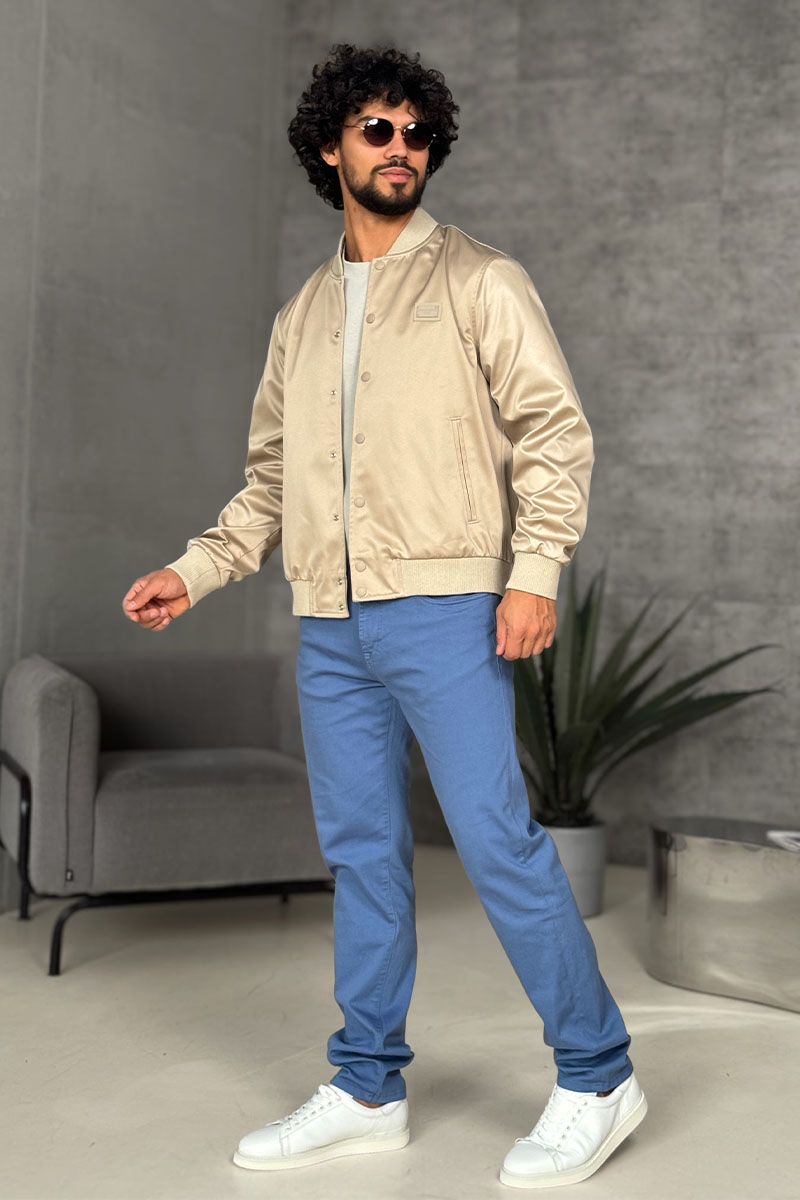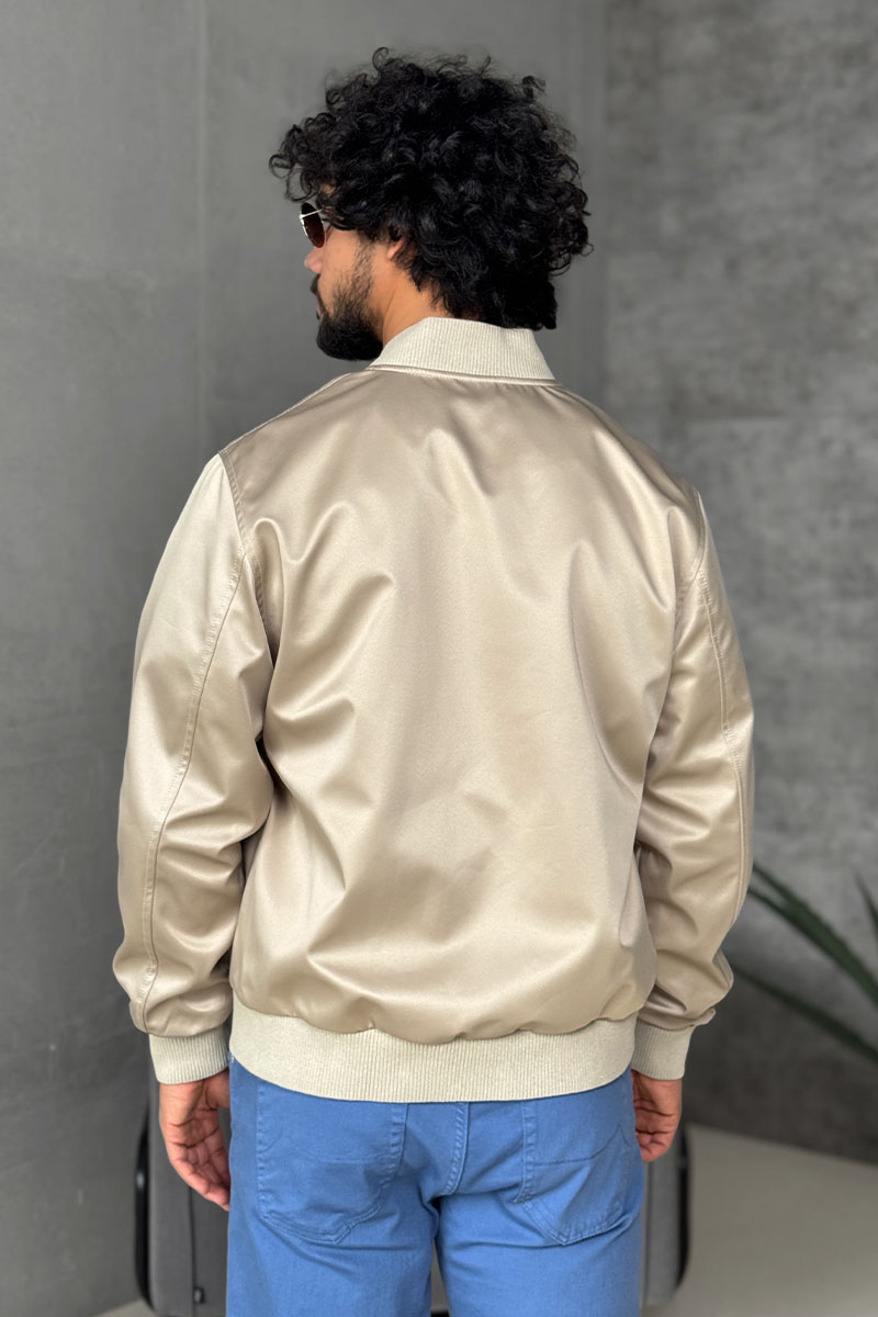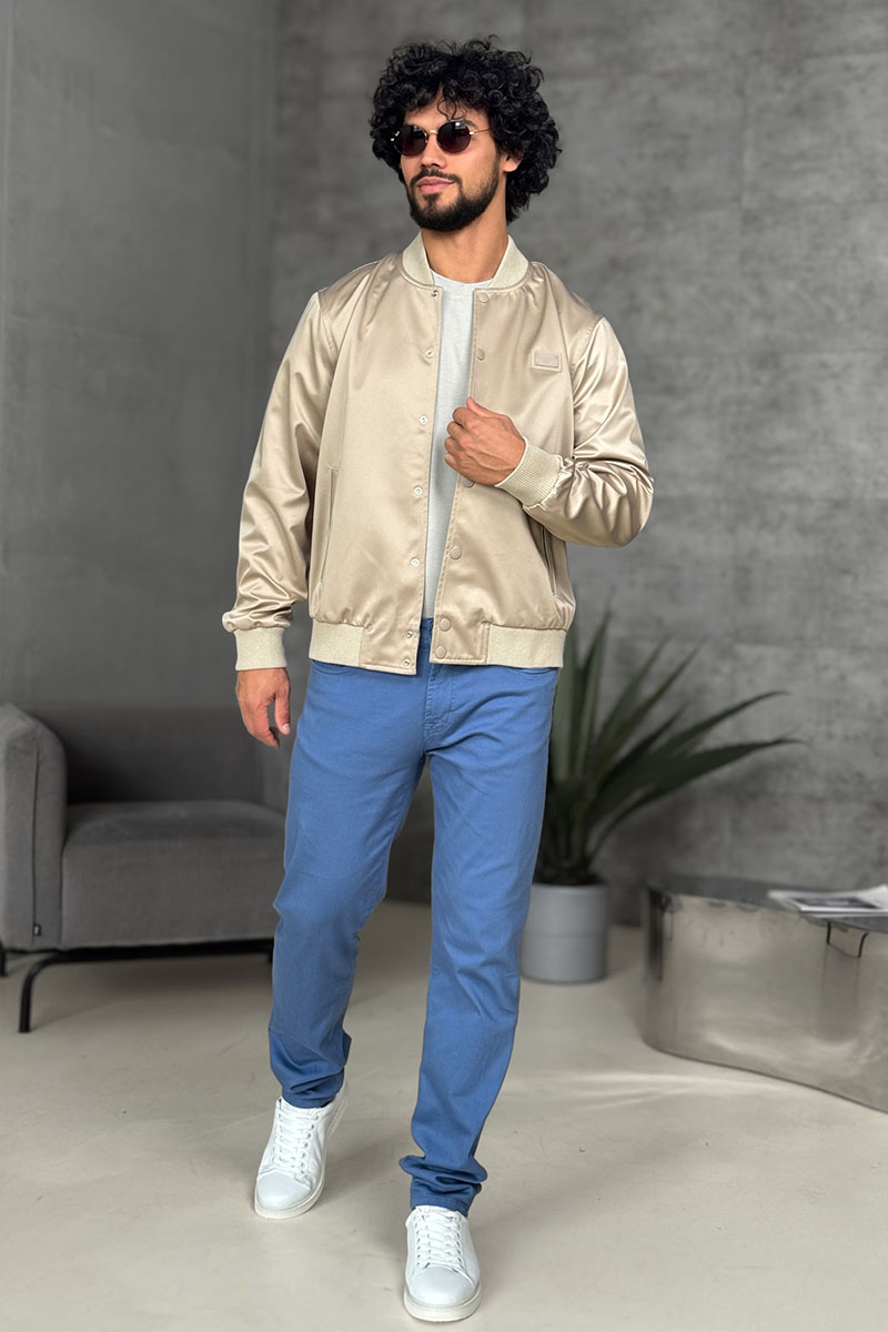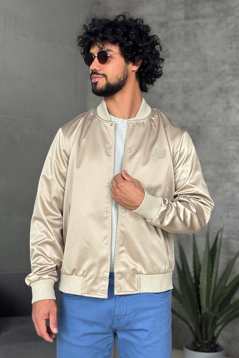 Мужской бежевый бомбер Dolce & Gabbana logo-plaque