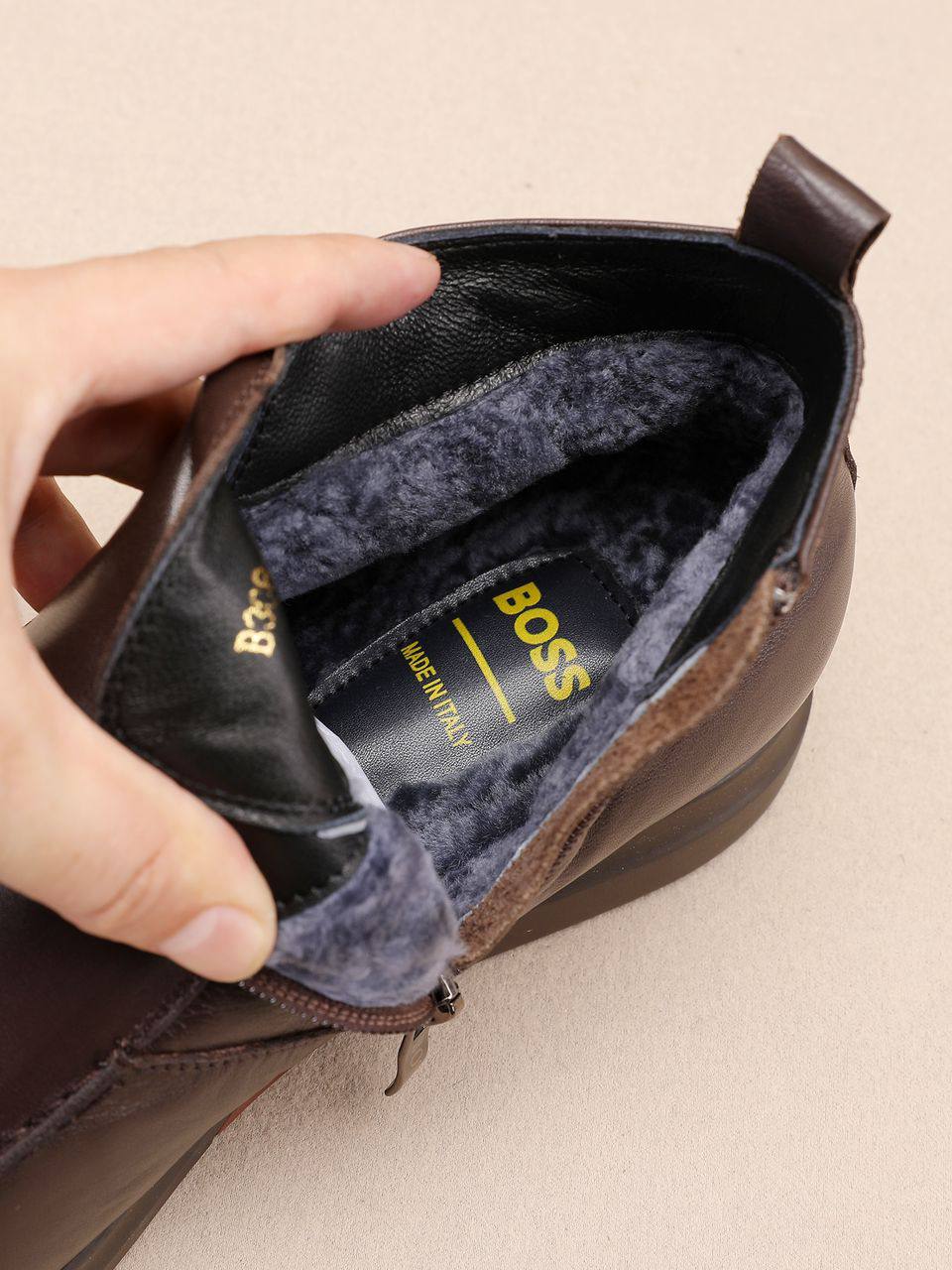 Кожаные лоферы с мехом Hugo Boss high-top - Brown