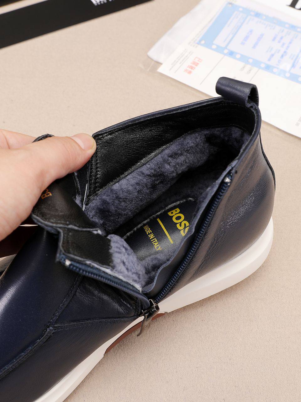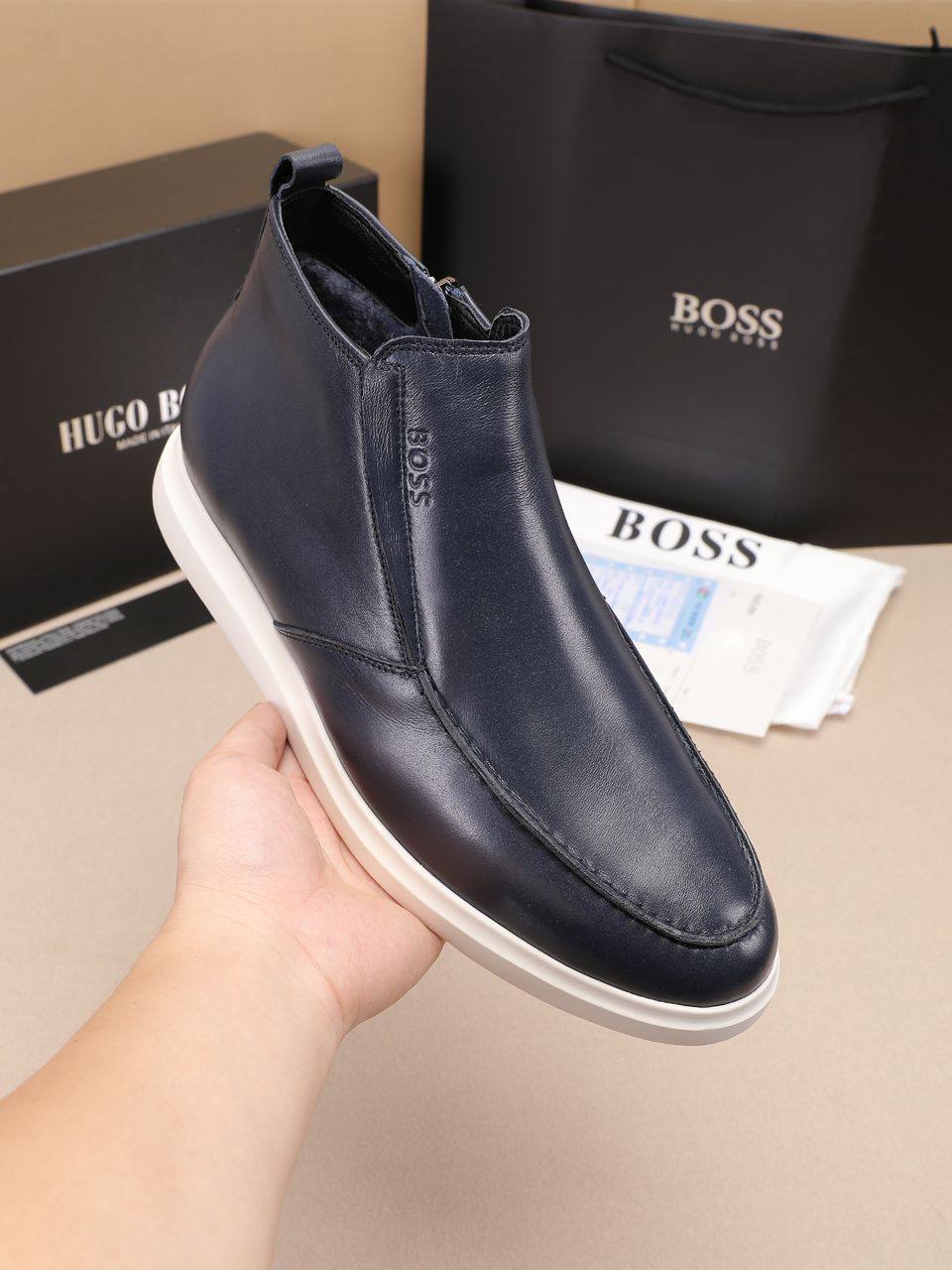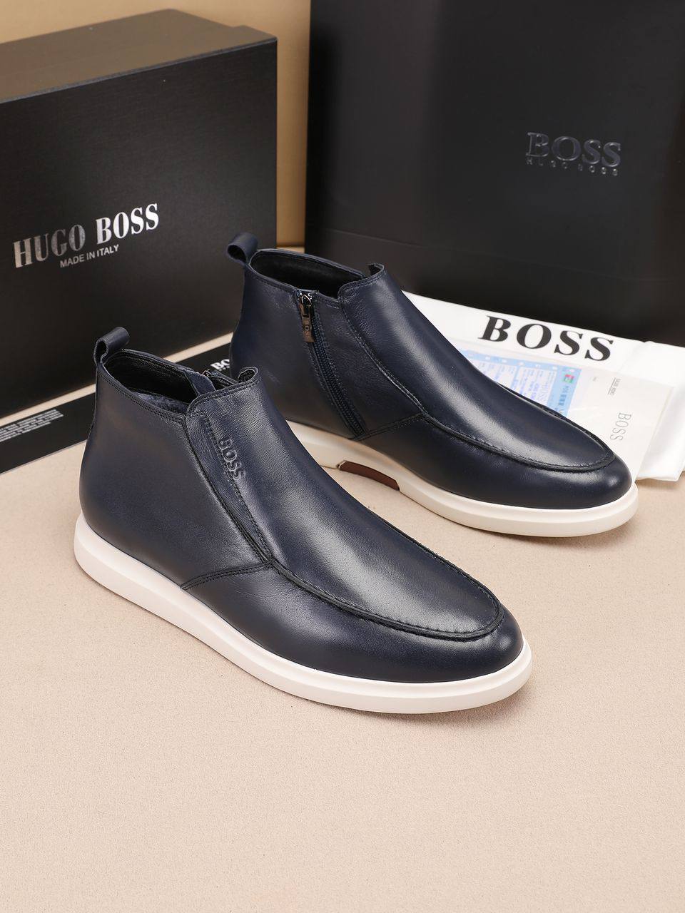 Кожаные лоферы с мехом Hugo Boss high-top - Navy