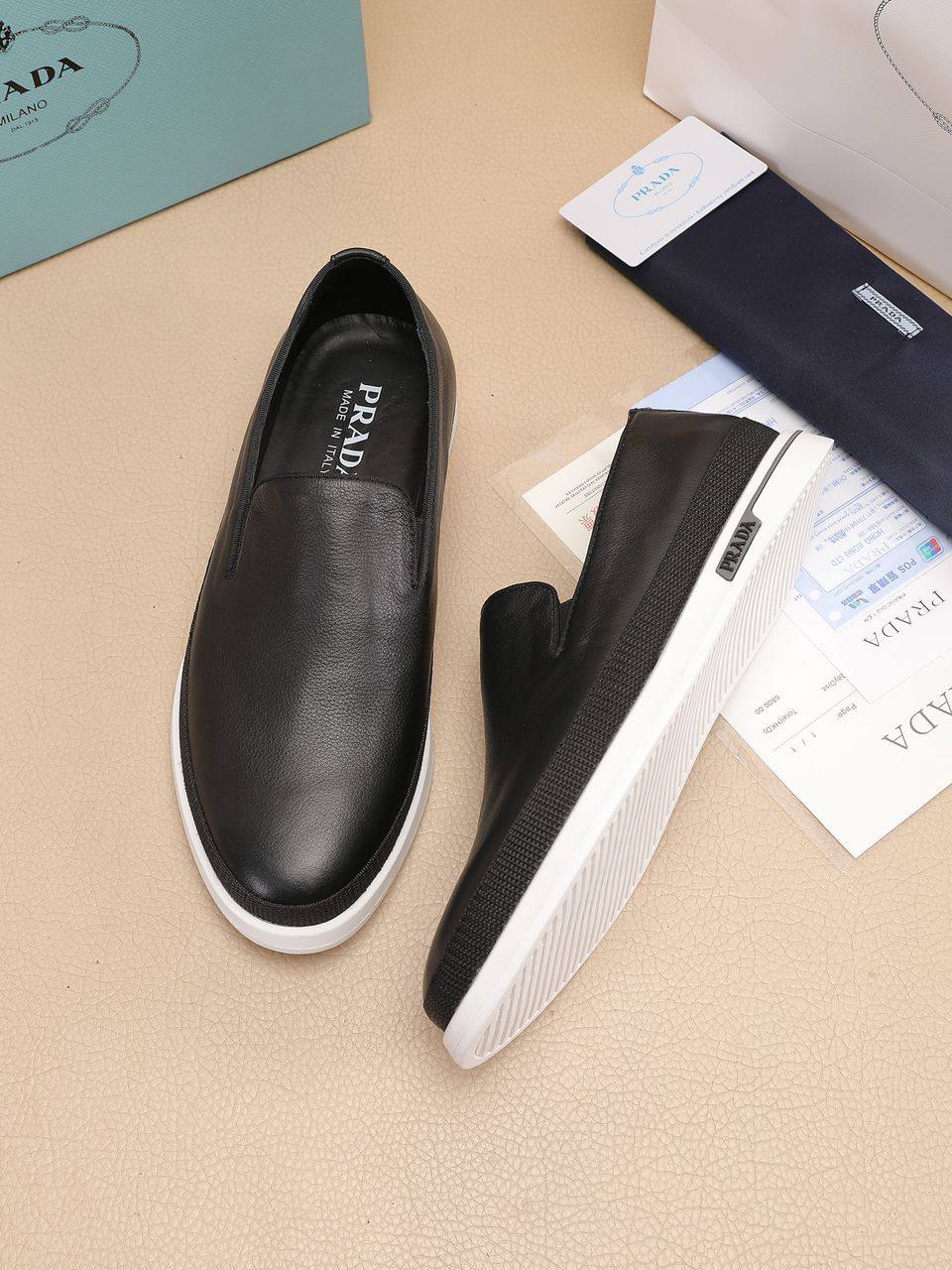 Мужские кожаные слипоны Prada Saint Tropez - Black / White
