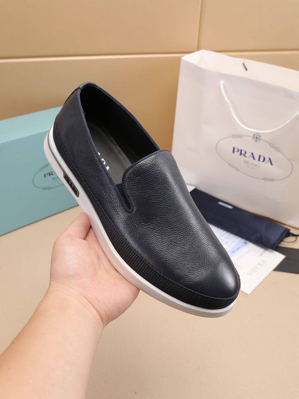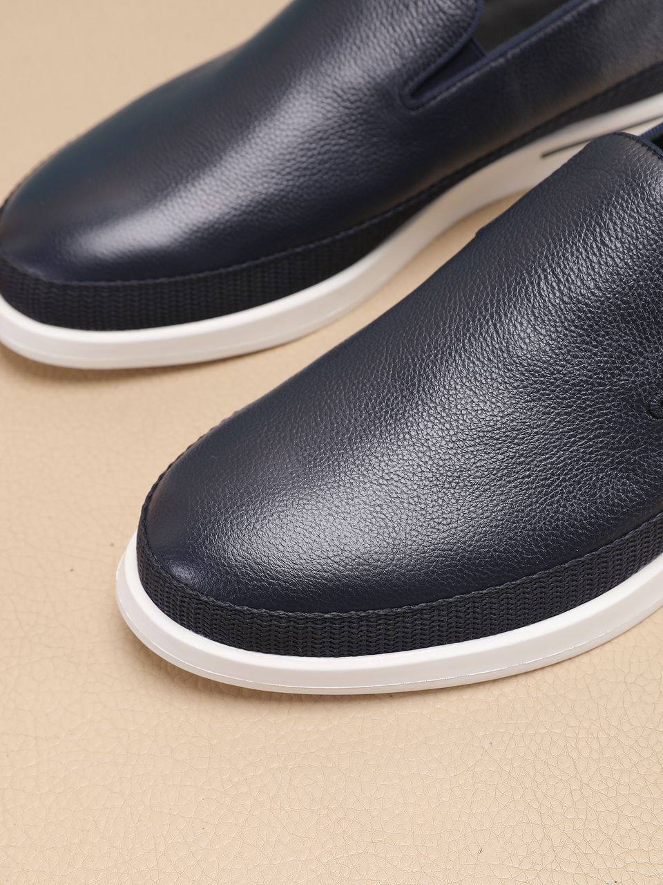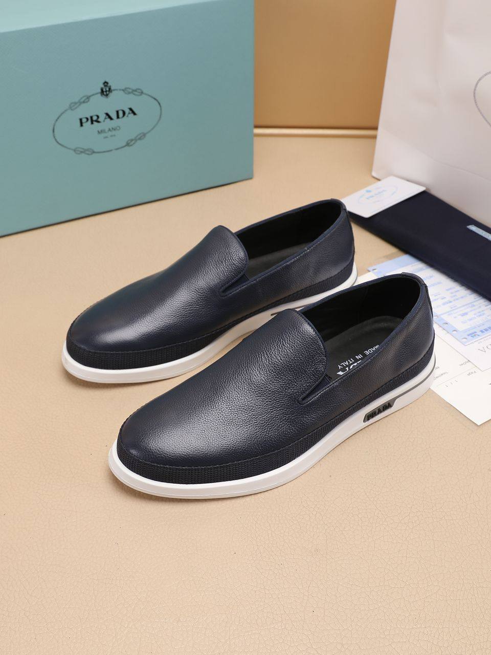 Мужские кожаные слипоны Prada Saint Tropez - Navy / White