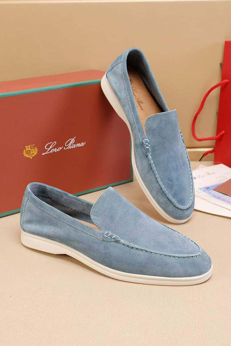 Мужские замшевые лоферы Loro Piana Summer Walk - Blue