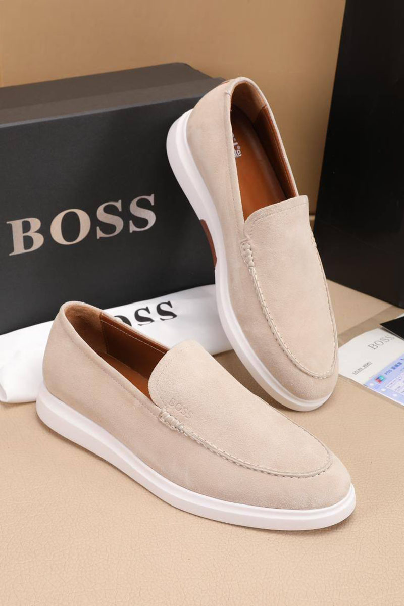 Замшевые лоферы Hugo Boss embossed logo - Beige