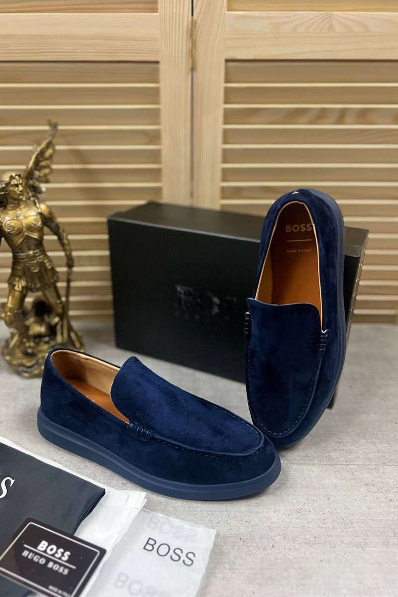 Замшевые лоферы Hugo Boss синего цвета