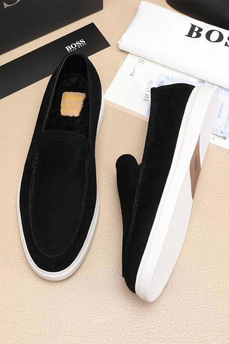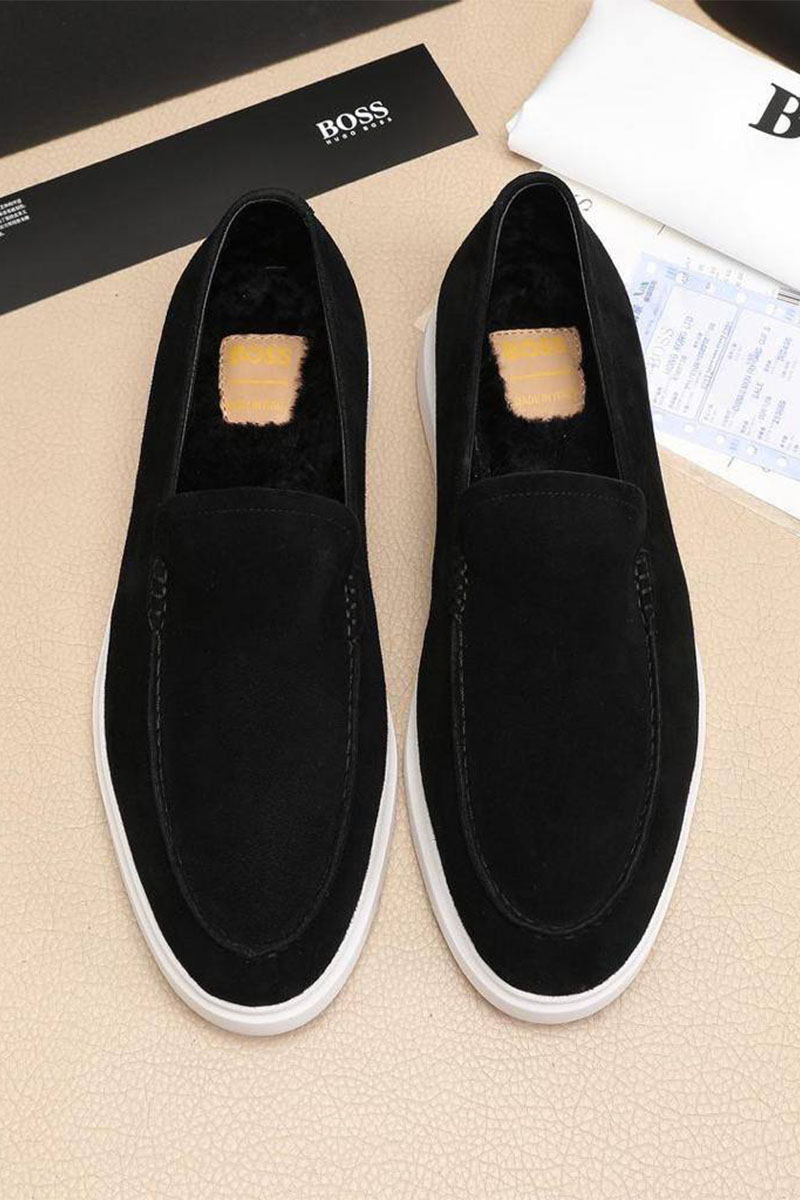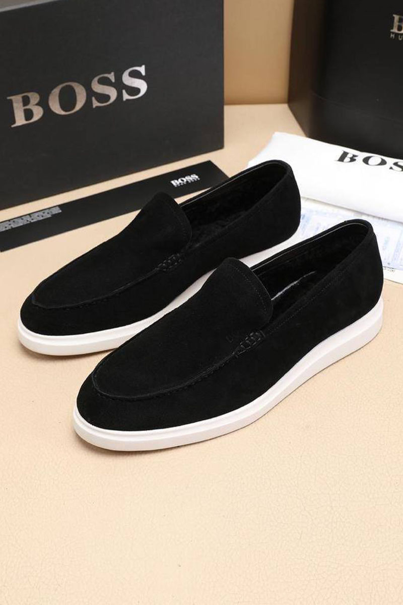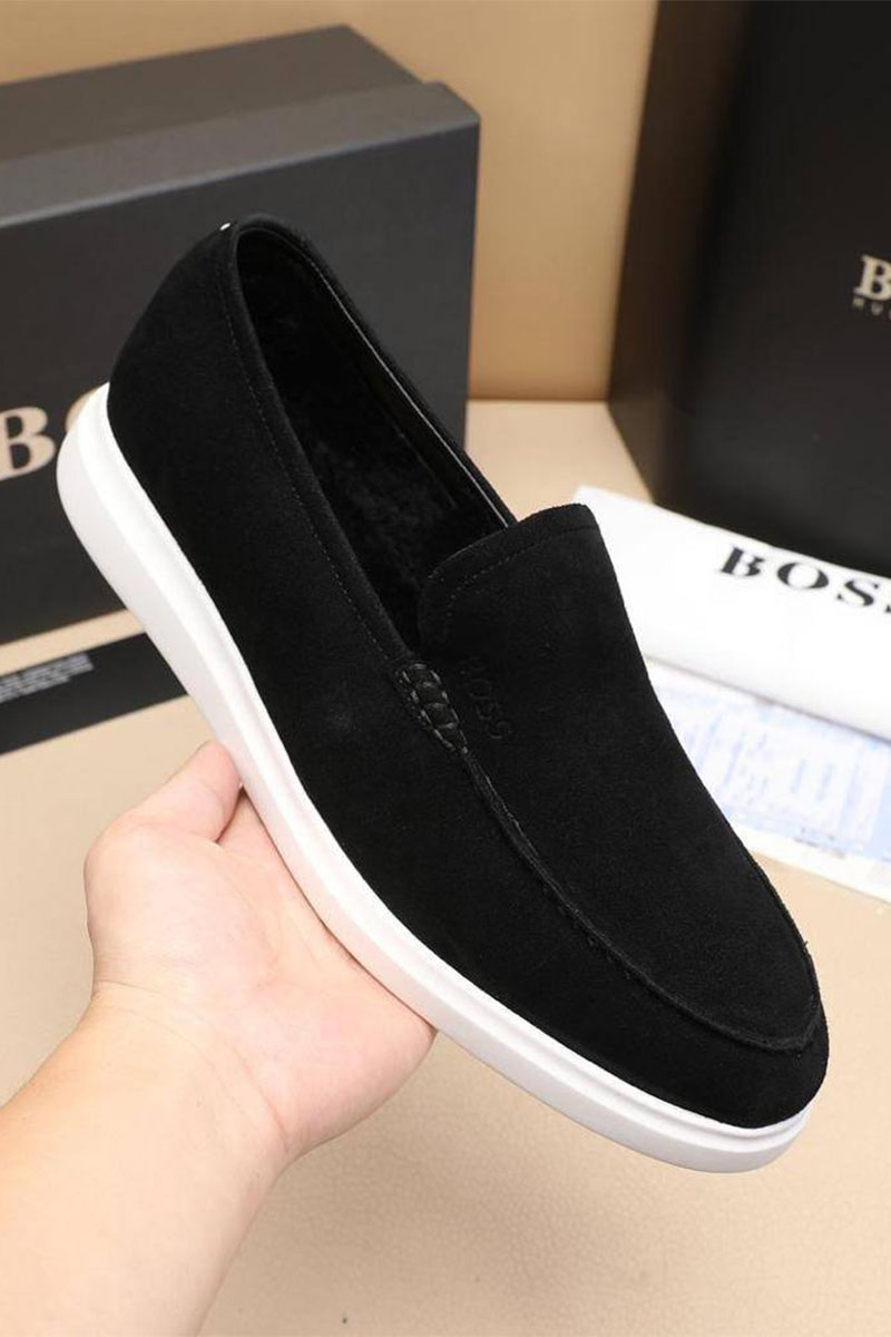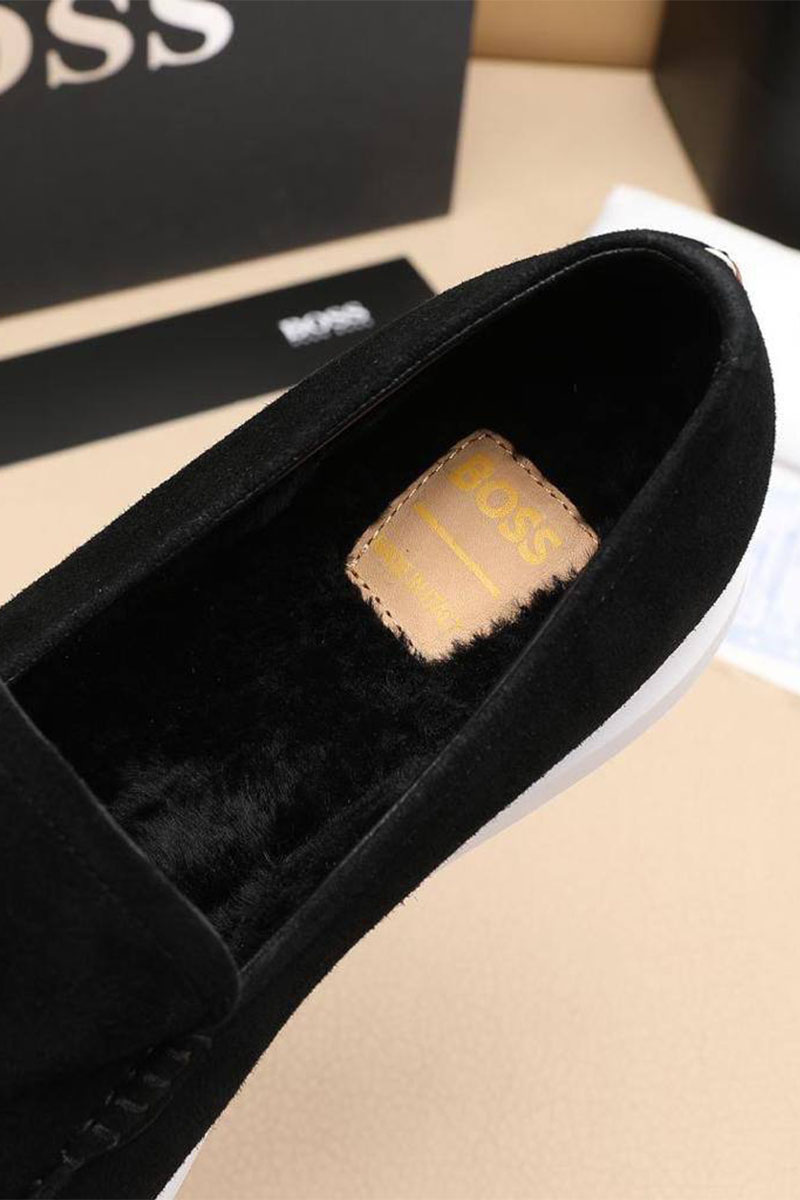 Замшевые лоферы с мехом Hugo Boss