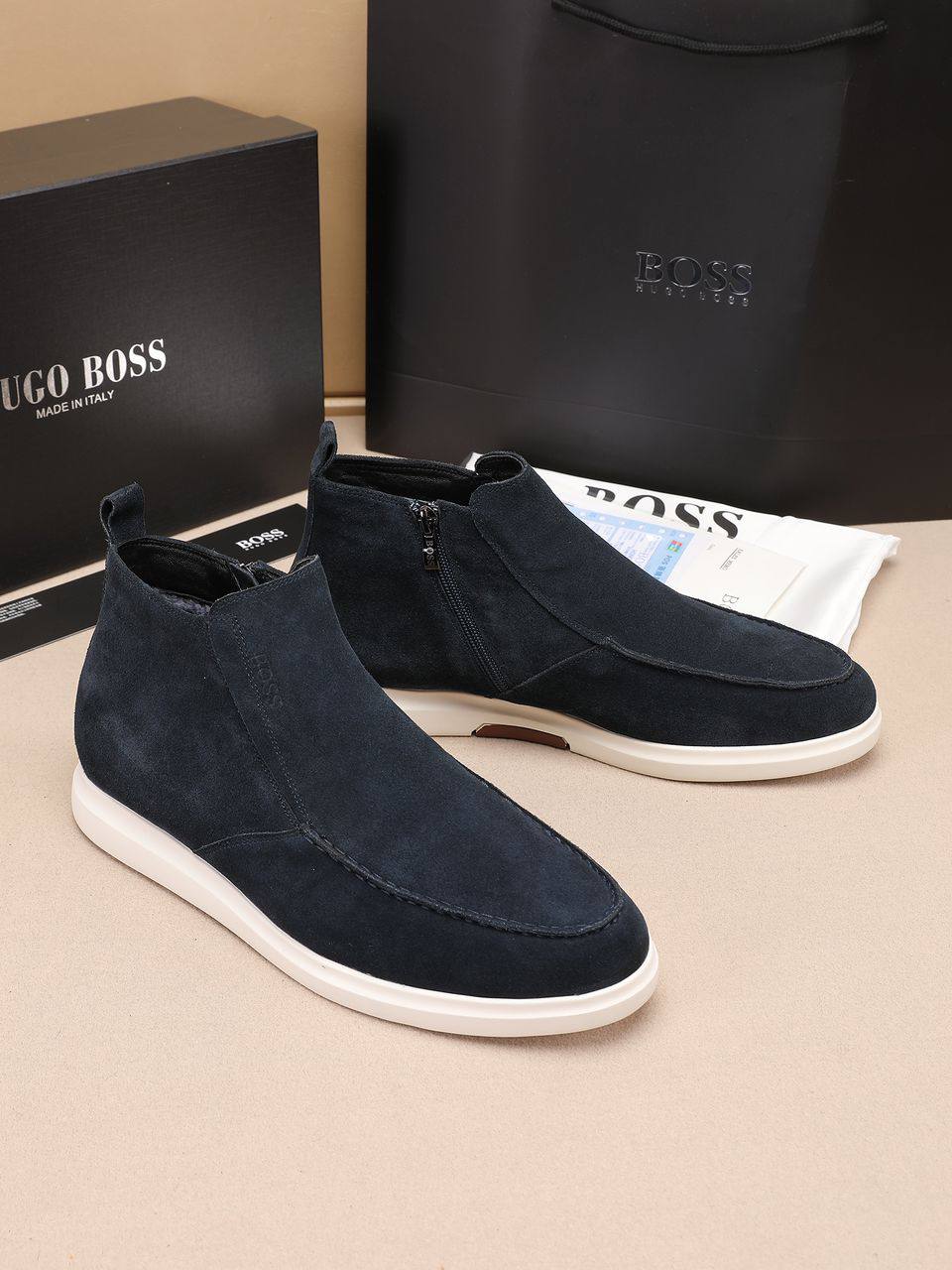 Замшевые лоферы с мехом Hugo Boss high-top - Navy