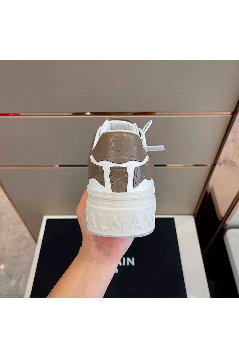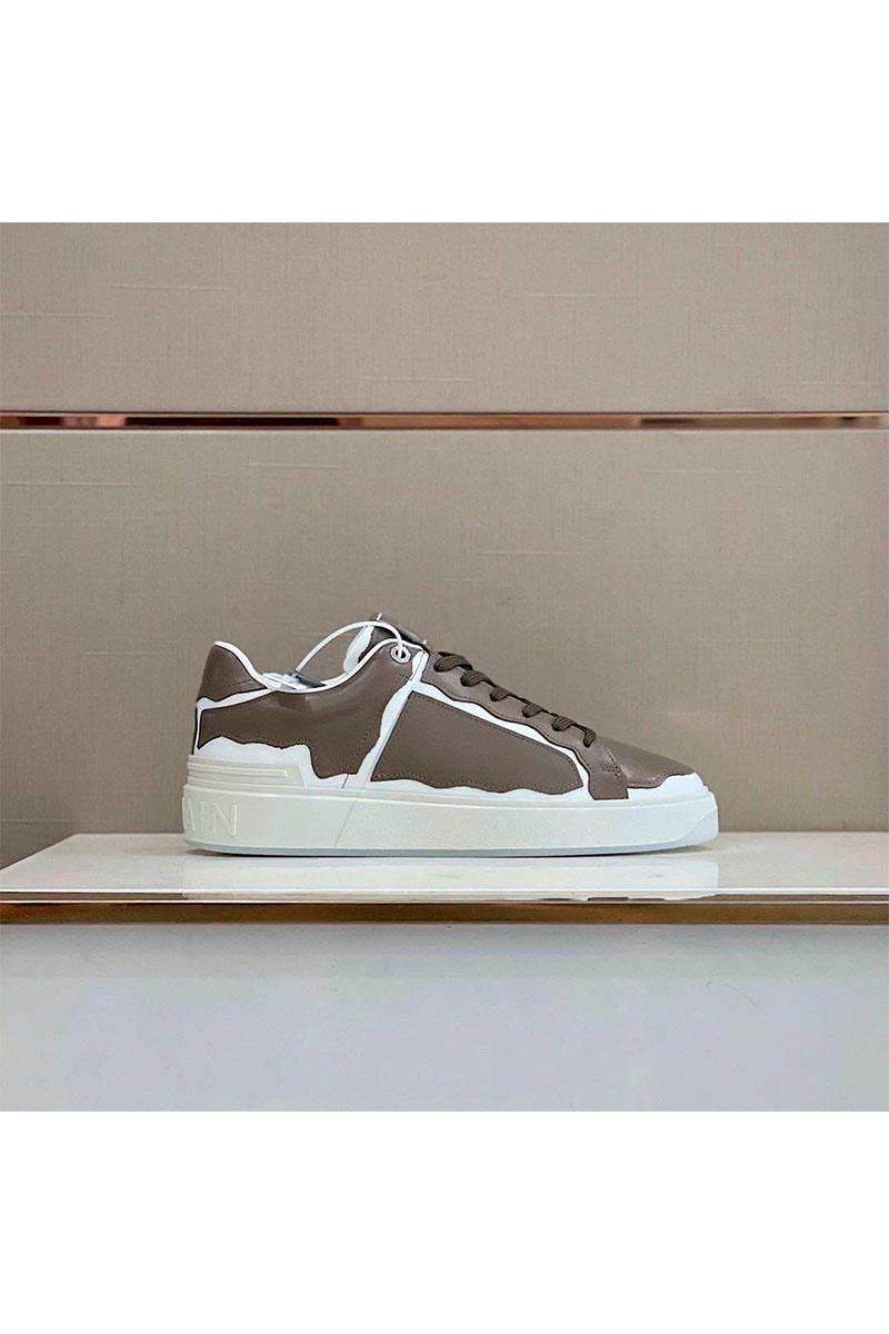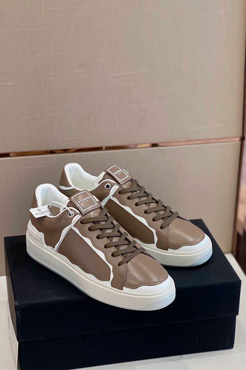 Коричневые кожаные кроссовки Balmain