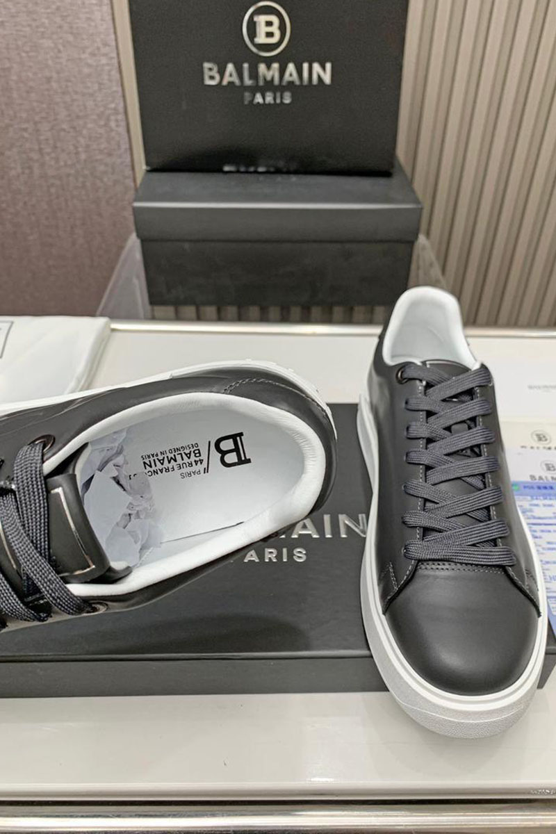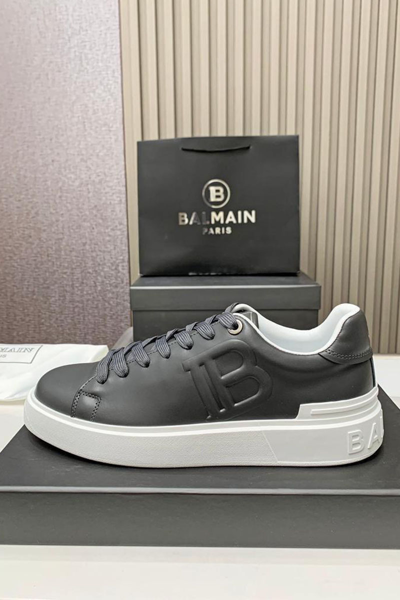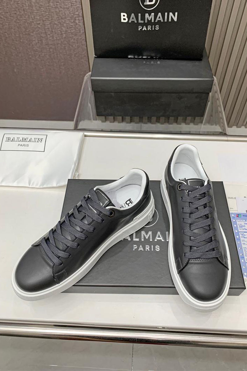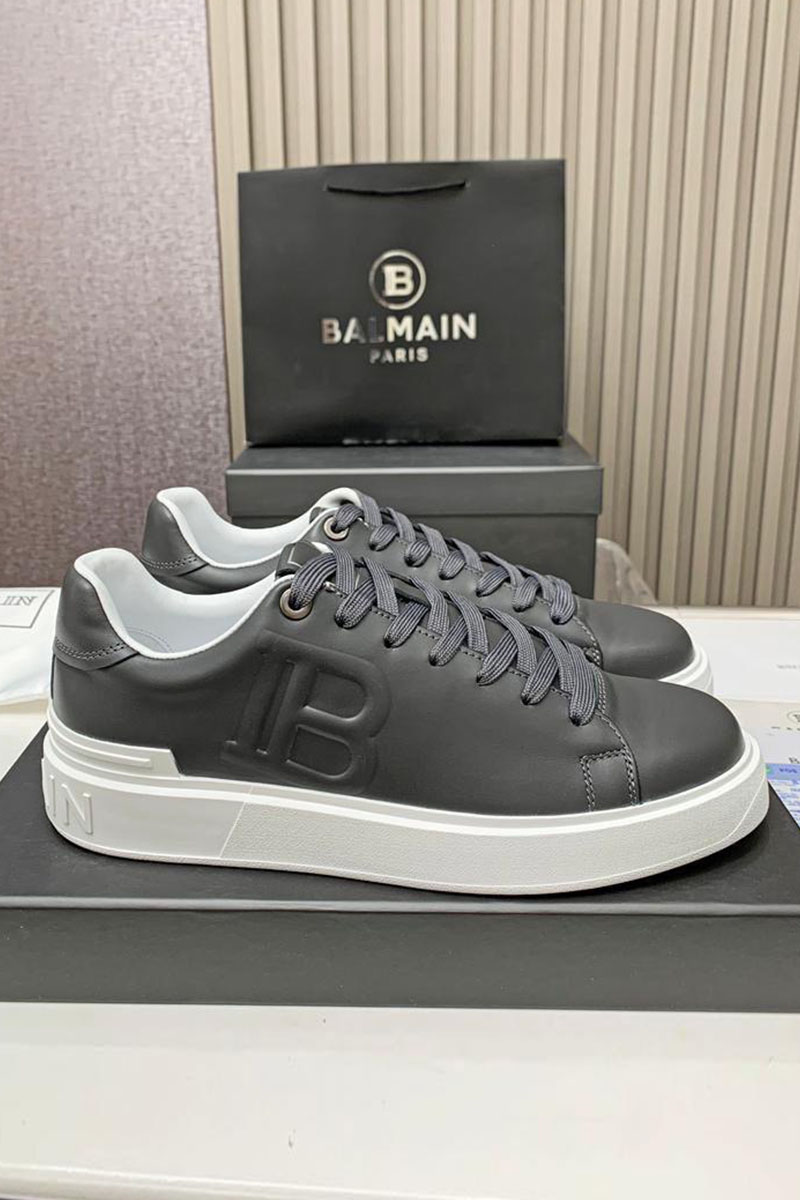 Кожаные кроссовки Balmain серого цвета