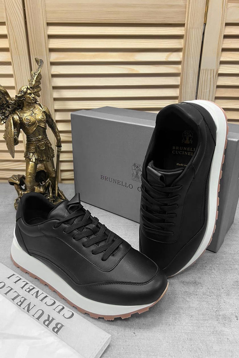 Кожаные кроссовки Brunello Cucinelli чёрного цвета
