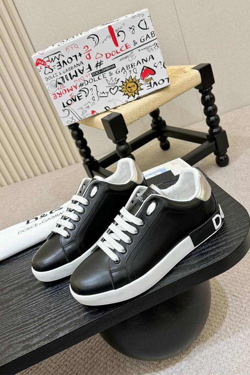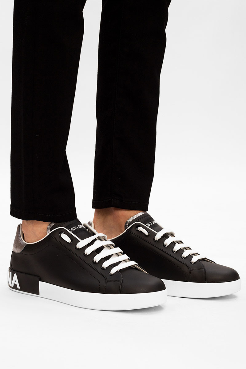 Кожаные кроссовки чёрного цвета Dolce & Gabbana Portofino