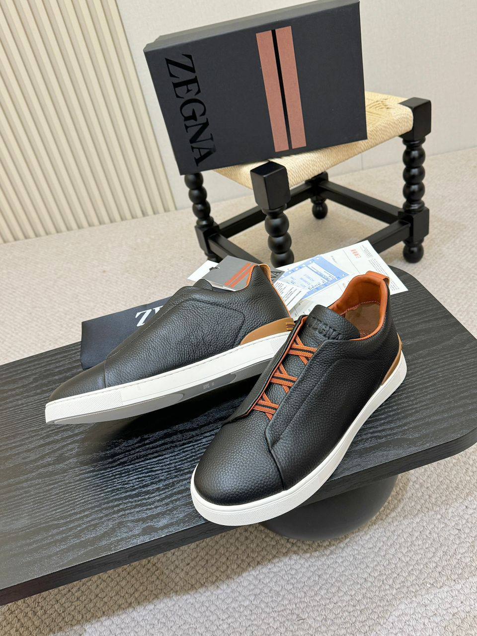 Кожаные кроссовки Ermenegildo Zegna Triple Stitch - Black