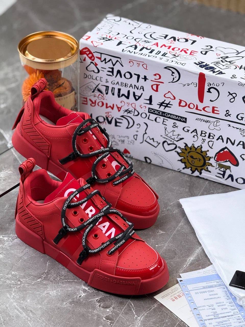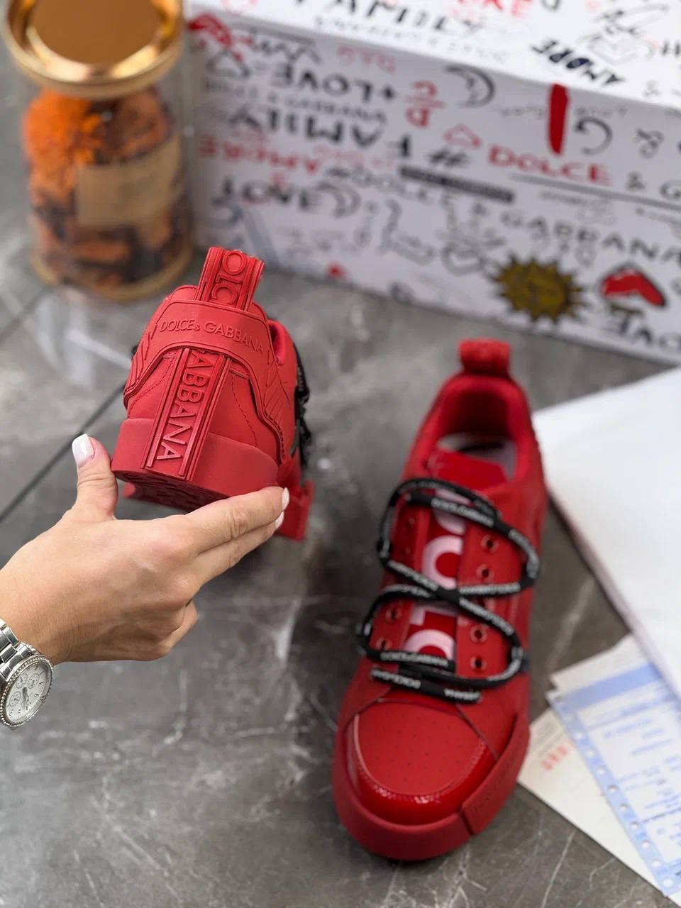 Красные кожаные кроссовки Dolce & Gabbana