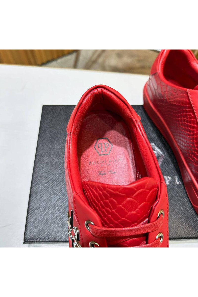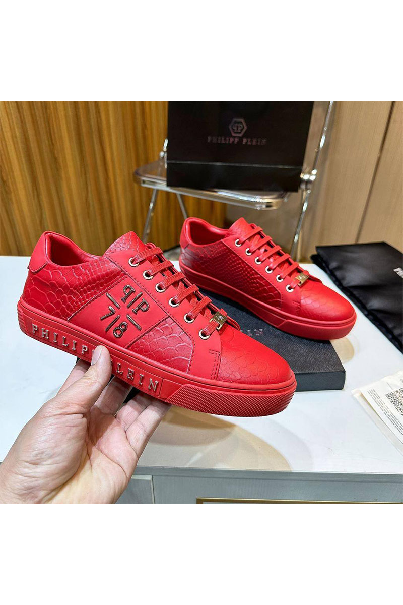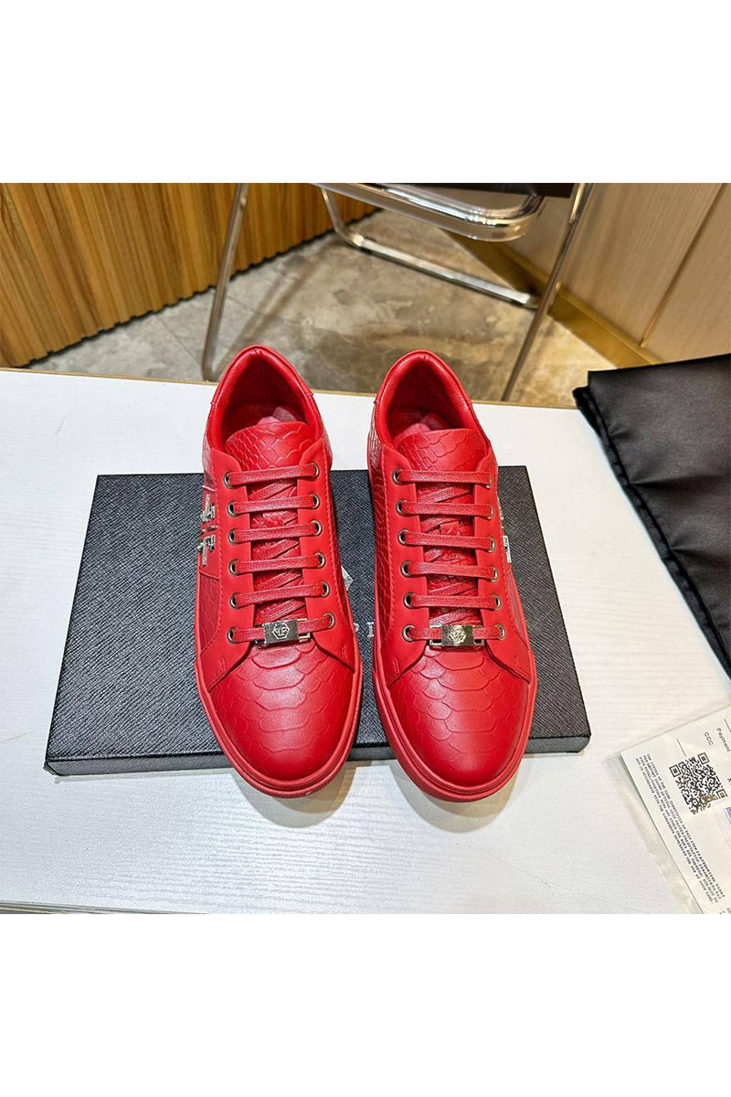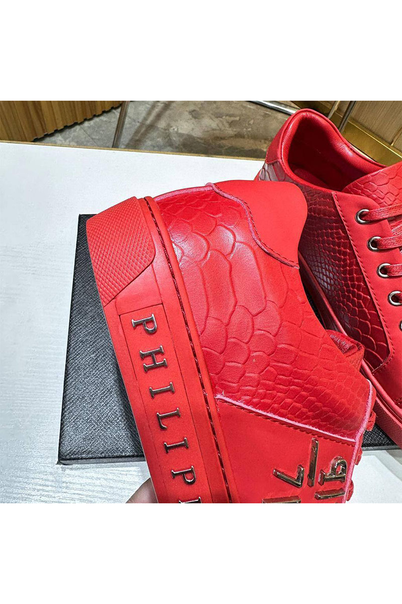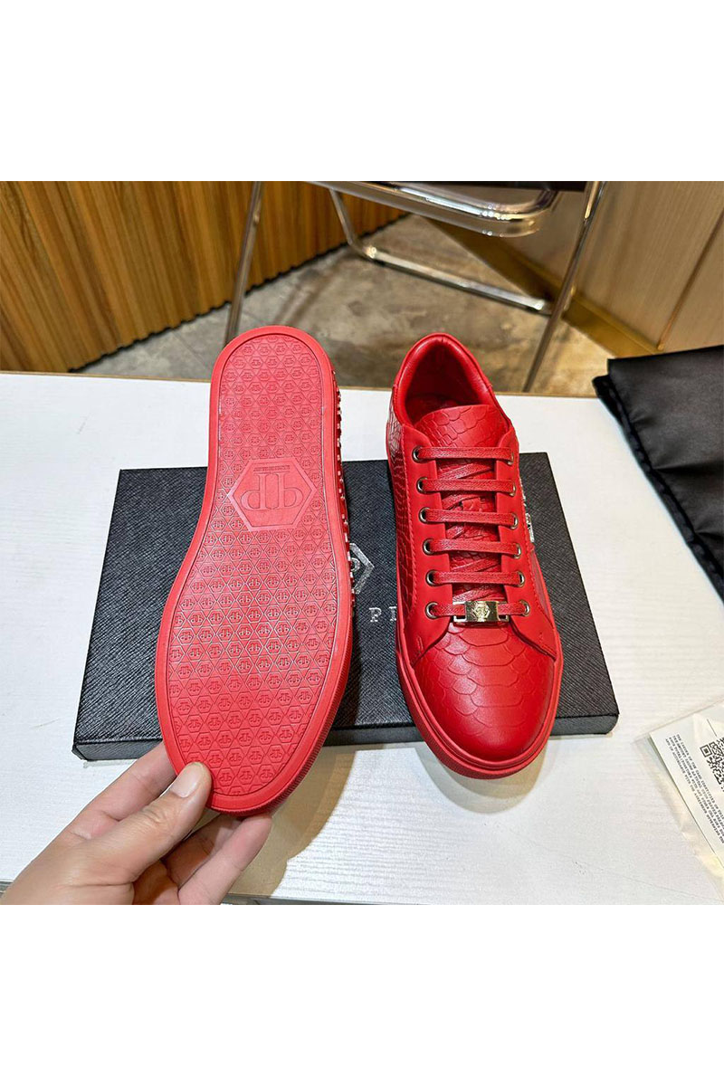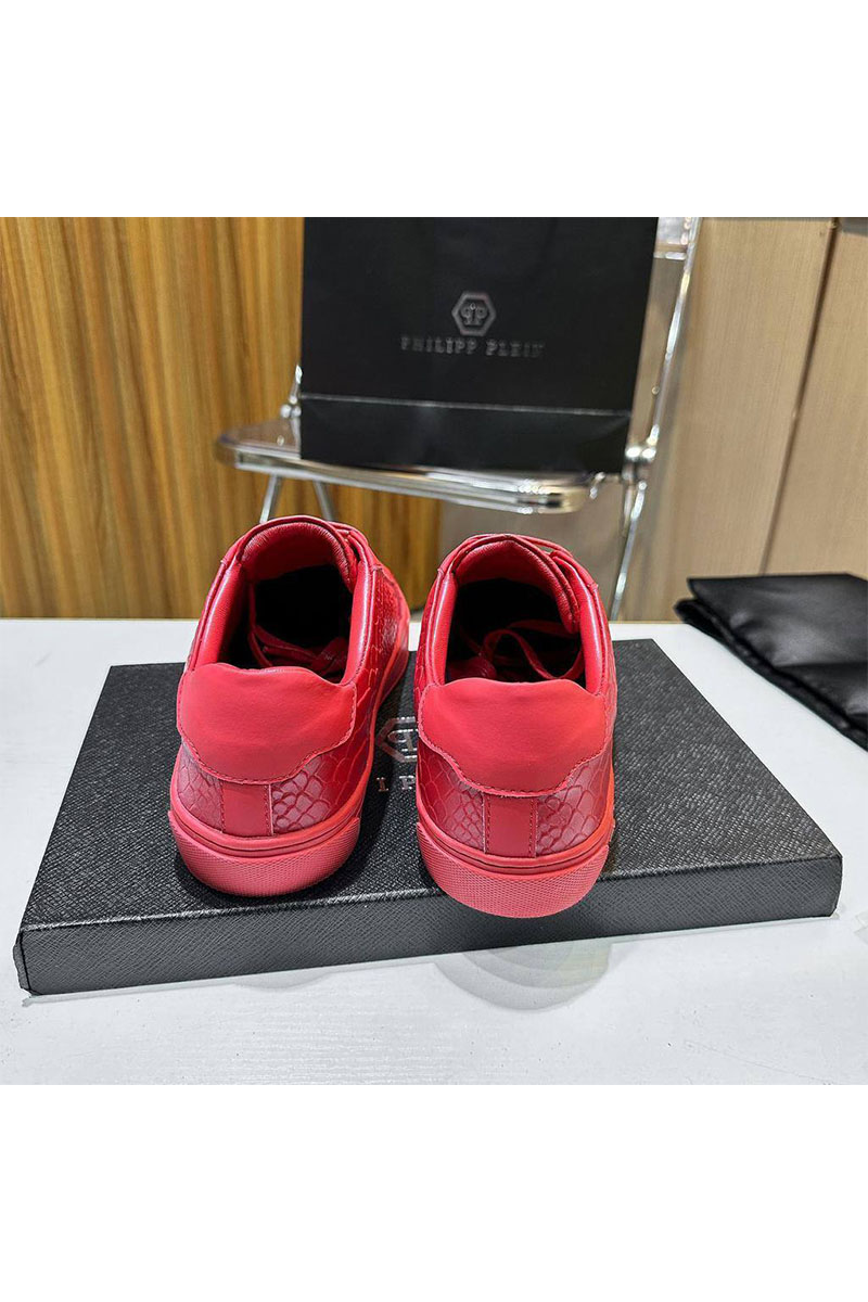 Мужские кожаные кроссовки Philipp Plein красного цвета