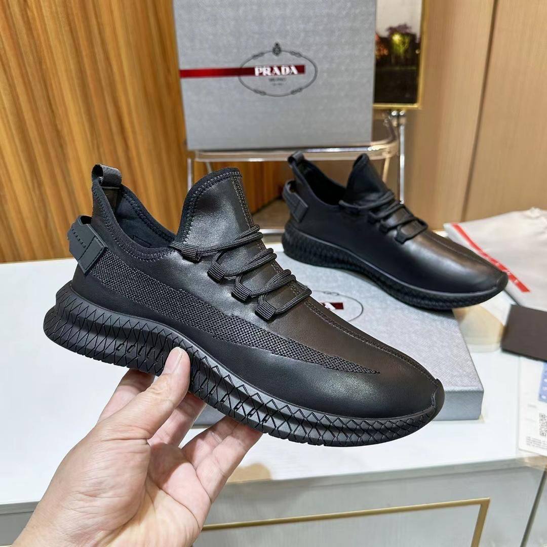 Мужские кожаные кроссовки Prada lace-up - Black