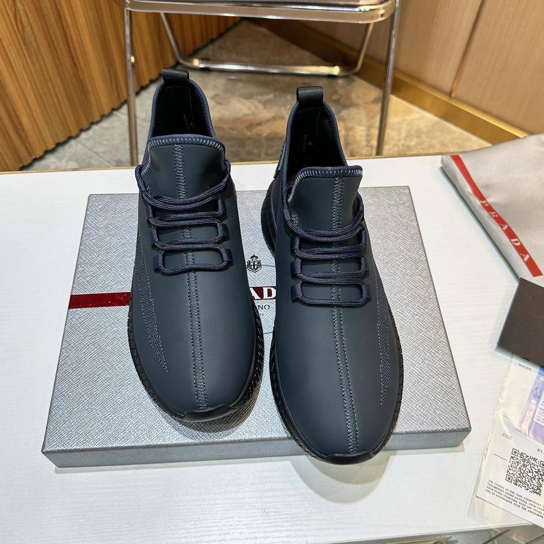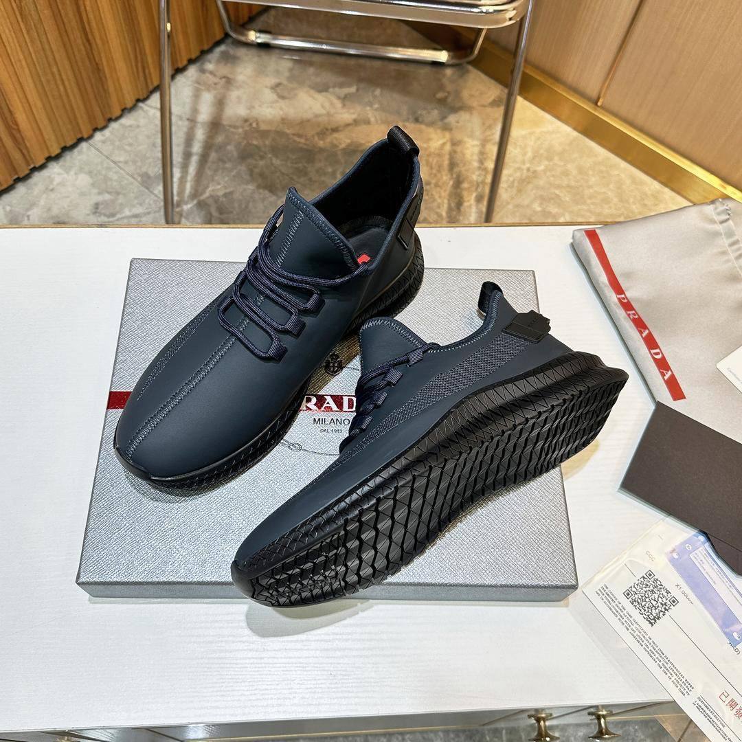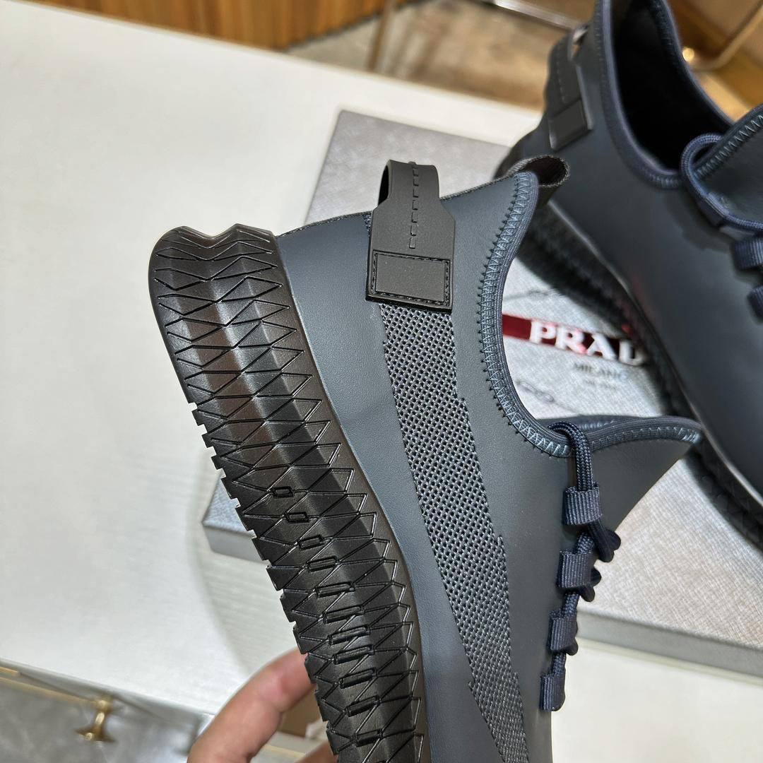 Мужские кожаные кроссовки Prada lace-up - Navy