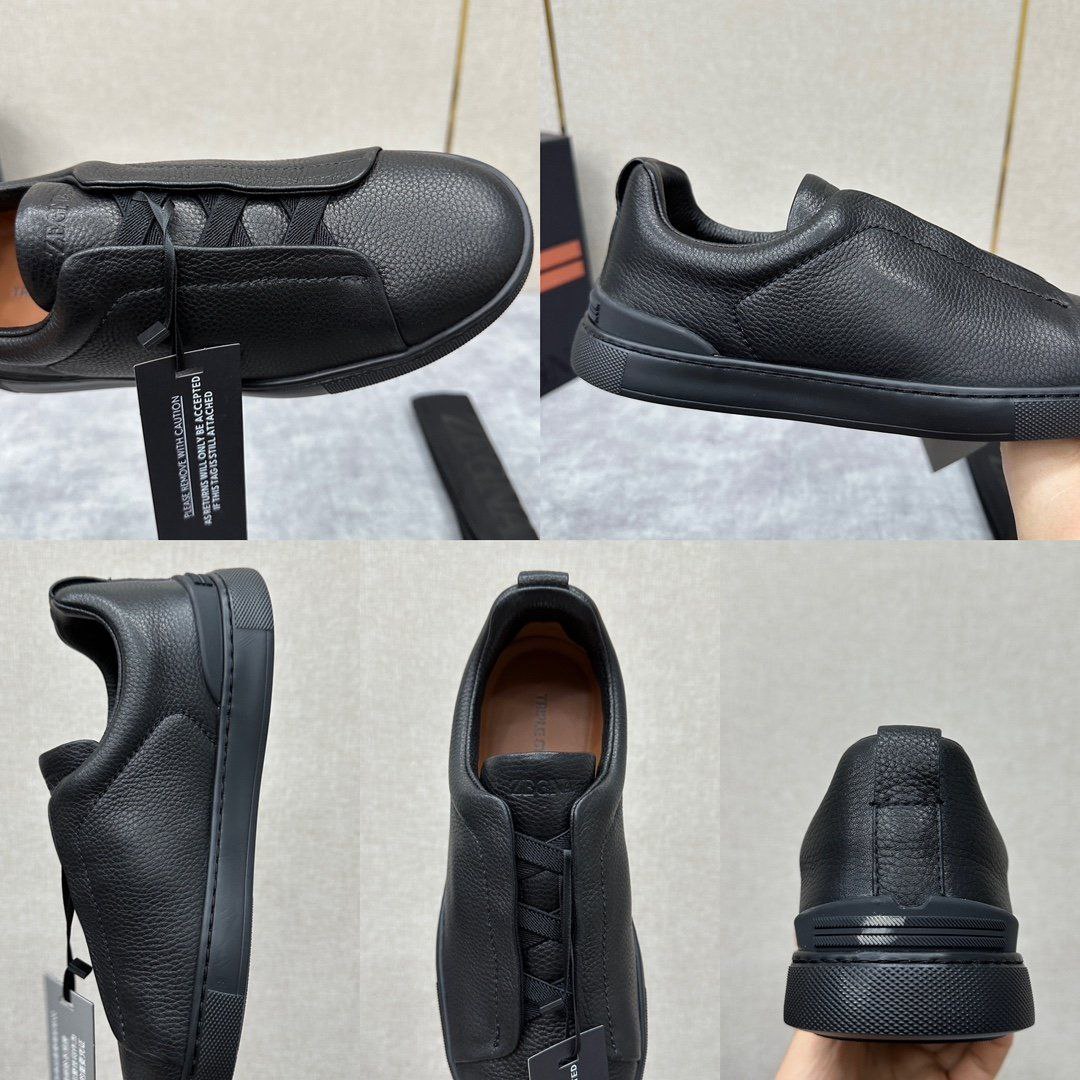 Мужские кроссовки Ermenegildo Zegna Triple Stitch Leather - Black