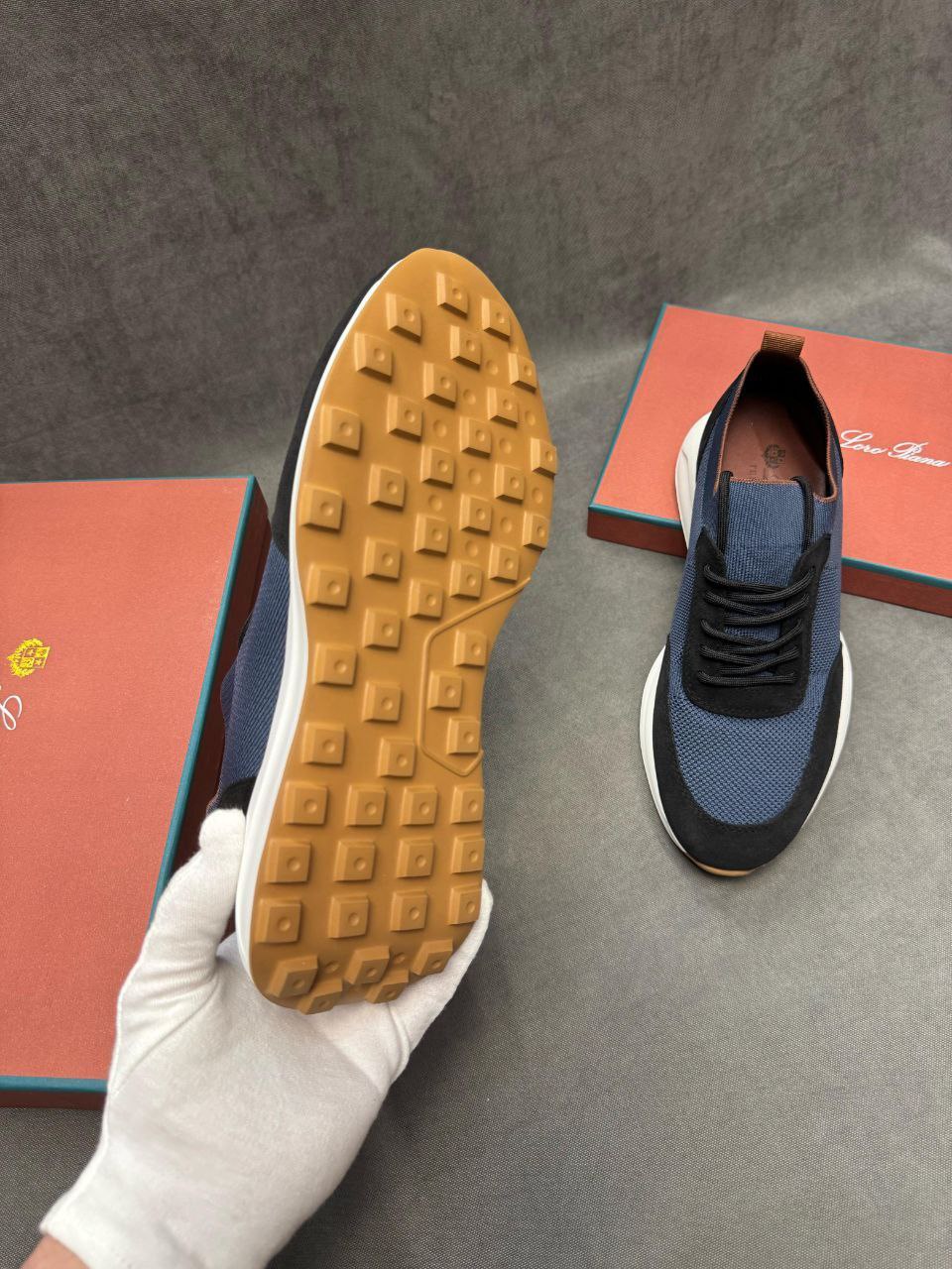 Мужские кроссовки Loro Piana knitted - Blue