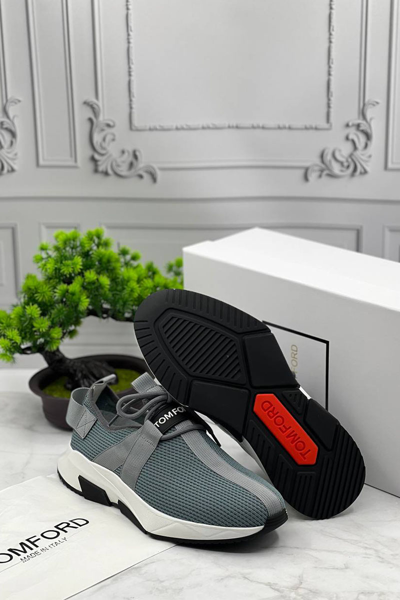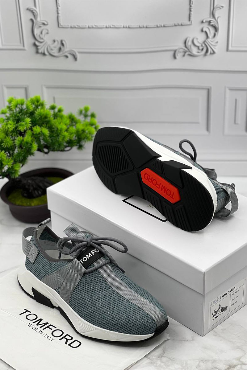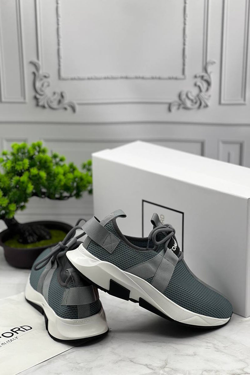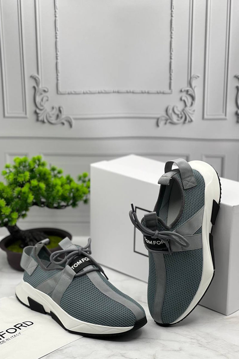 Мужские текстильные кроссовки Tom Ford серого цвета