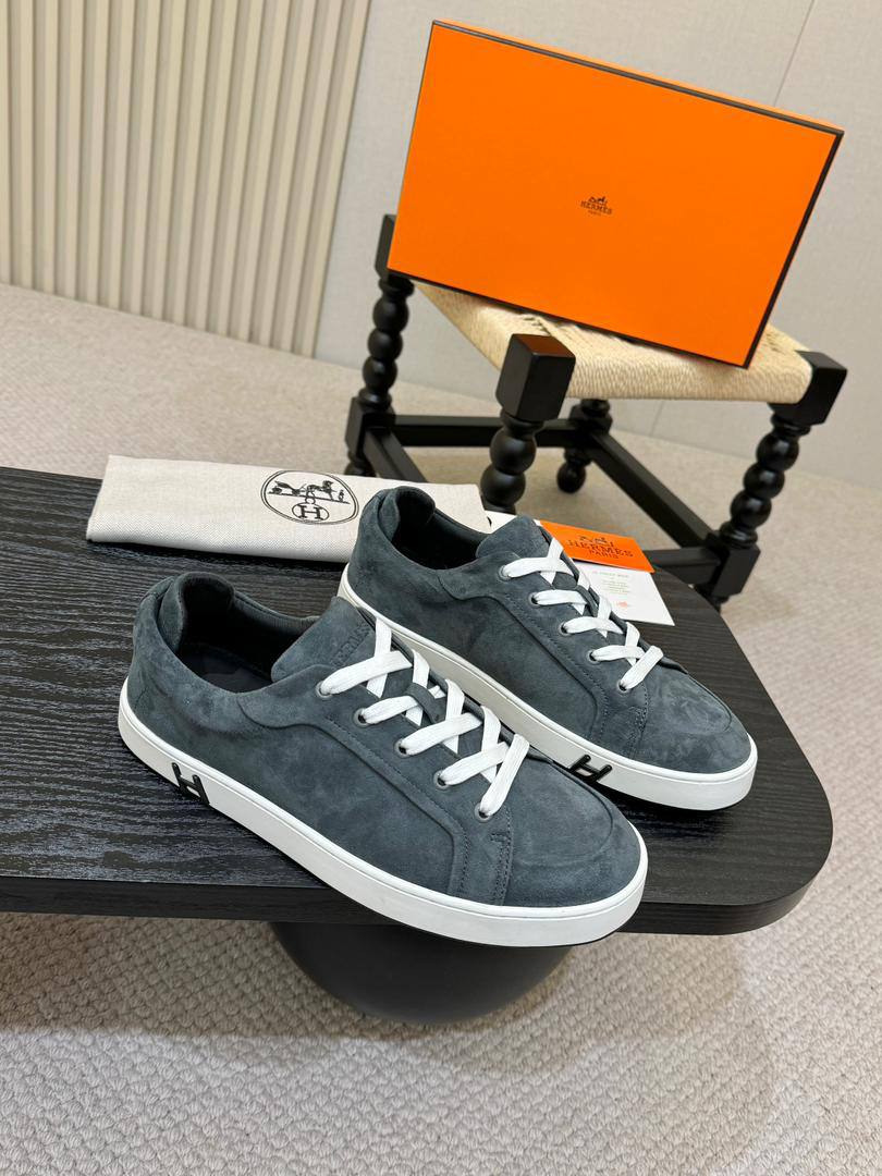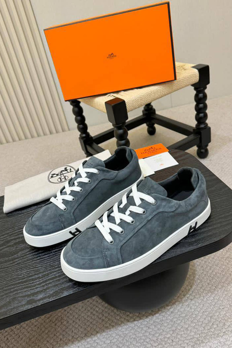 Мужские замшевые кроссовки Hermes Kid - Grey