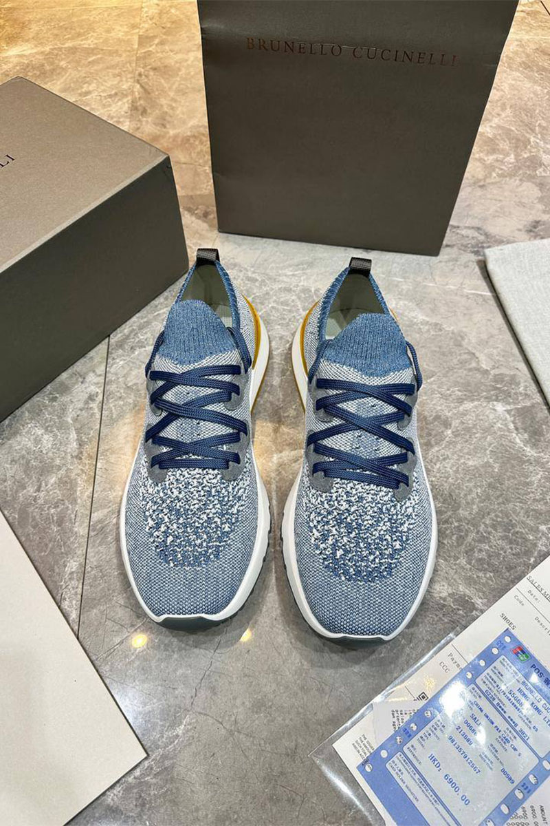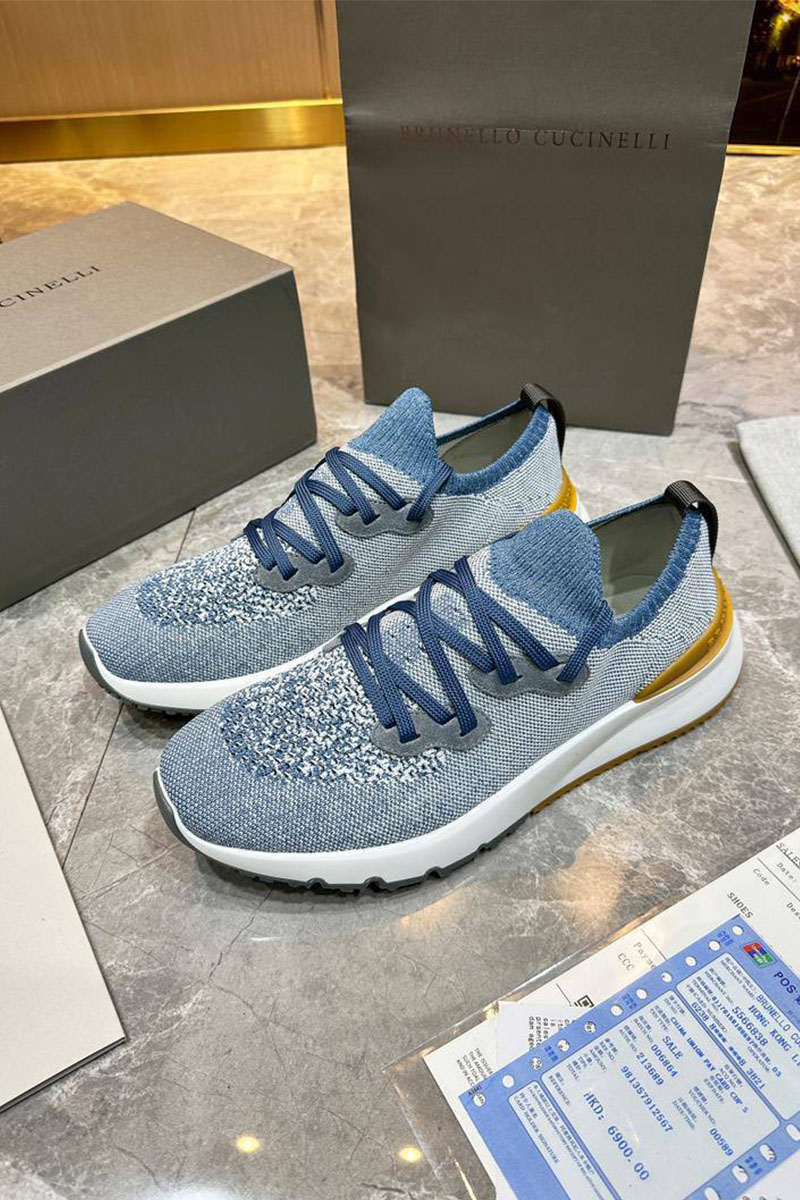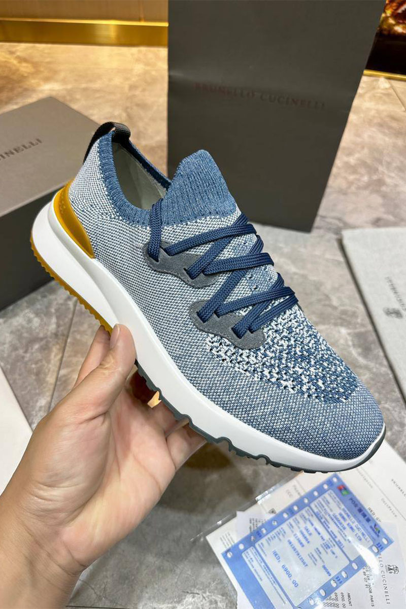 Текстильные кроссовки Brunello Cucinelli голубого цвета