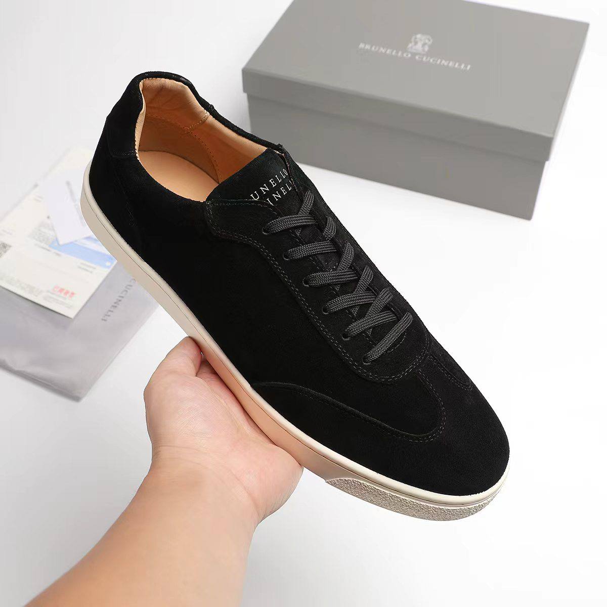 Замшевые кроссовки Brunello Cucinelli logo-print - Black