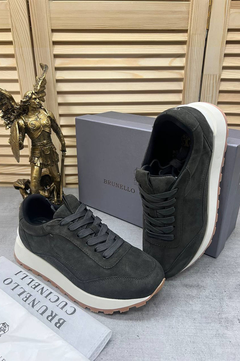 Замшевые кроссовки Brunello Cucinelli серого цвета