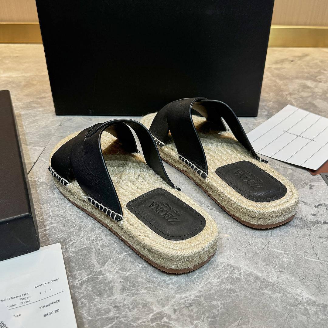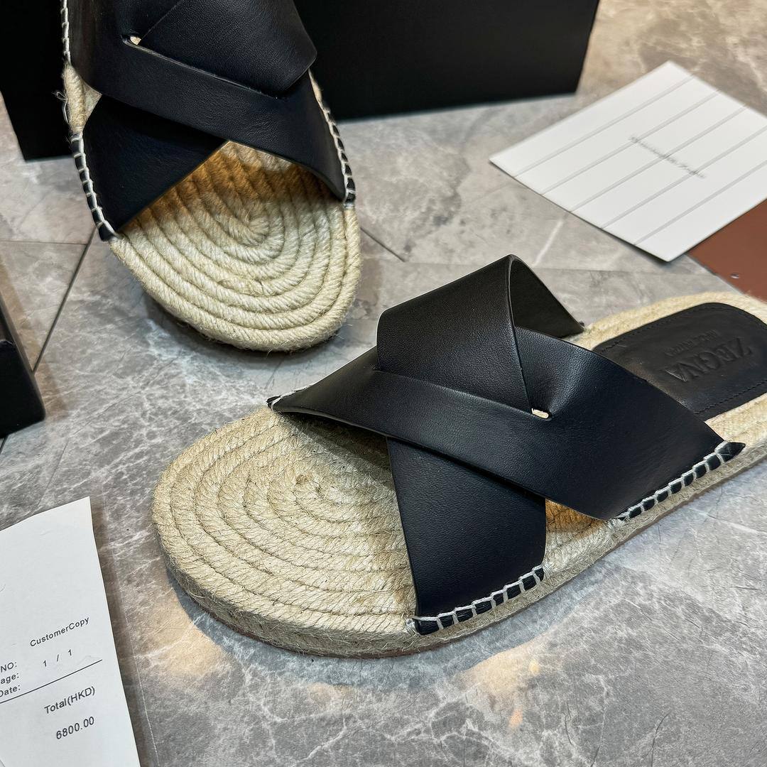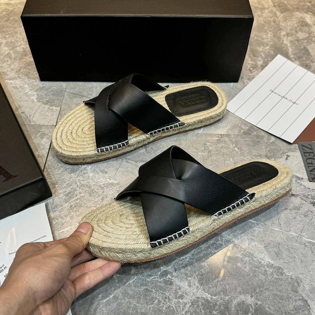 Мужские шлёпанцы Ermenegildo Zegna leather - Black