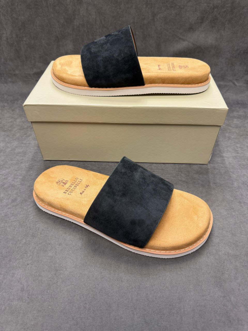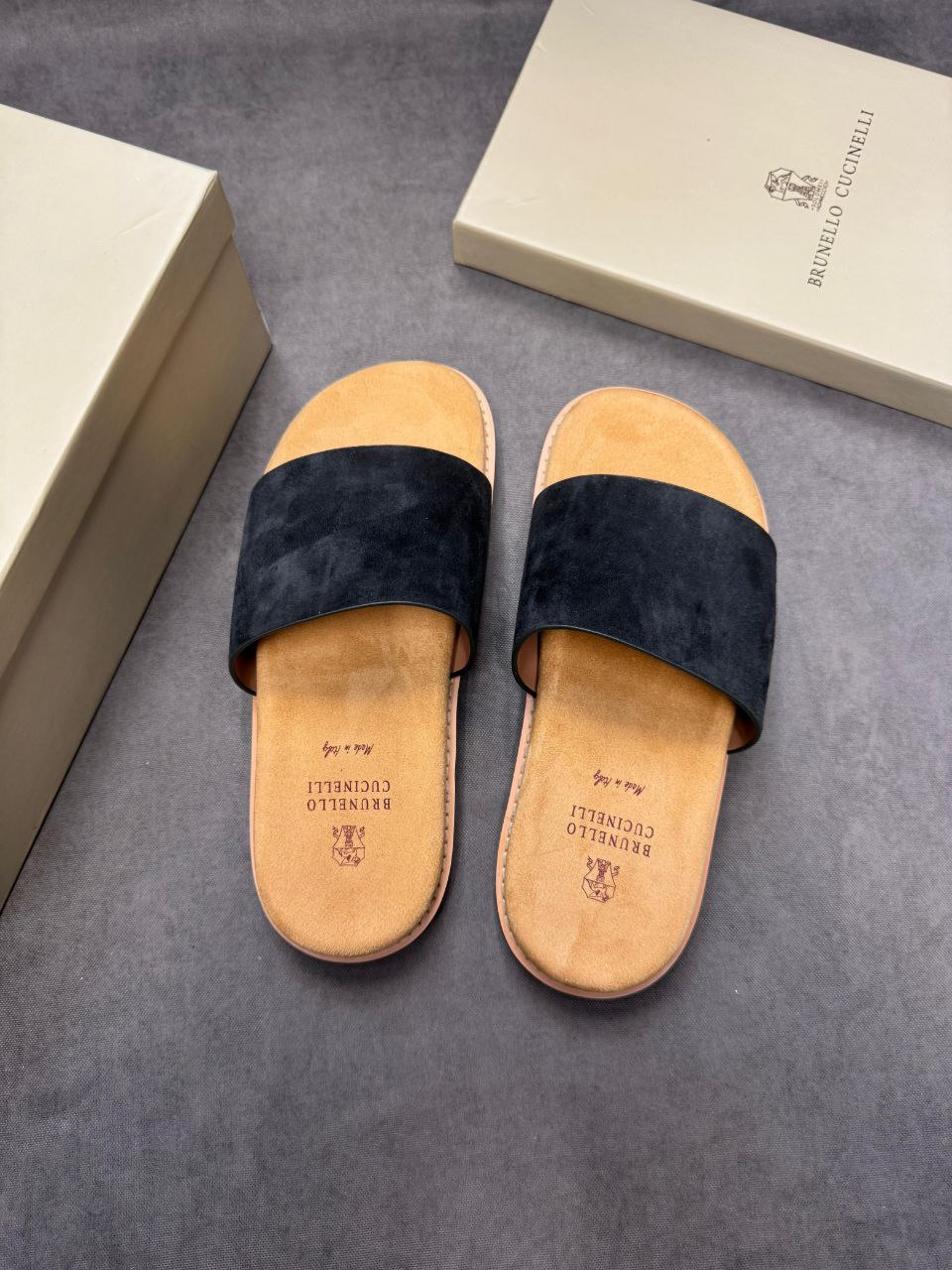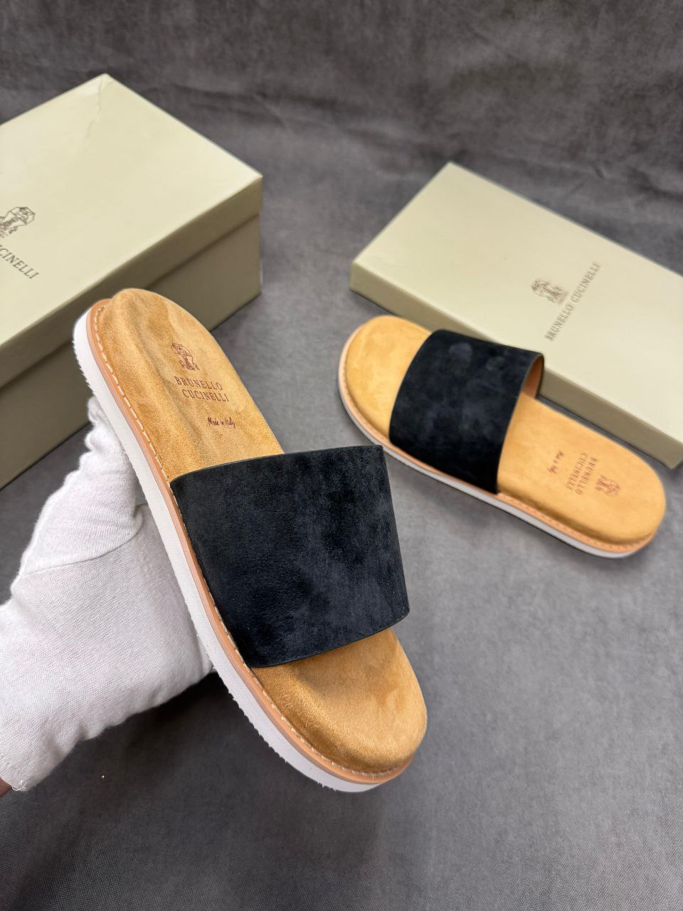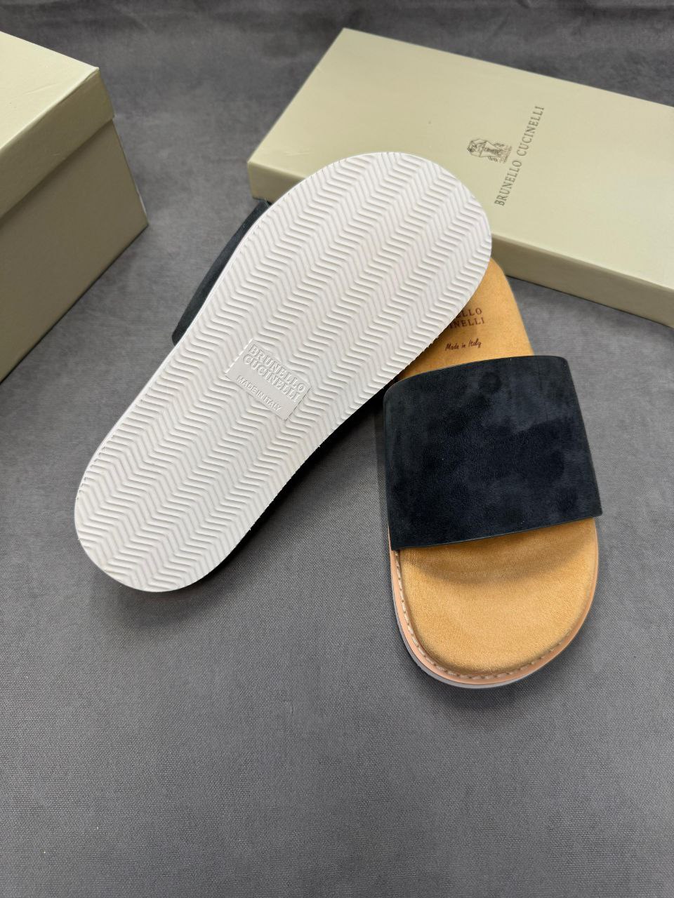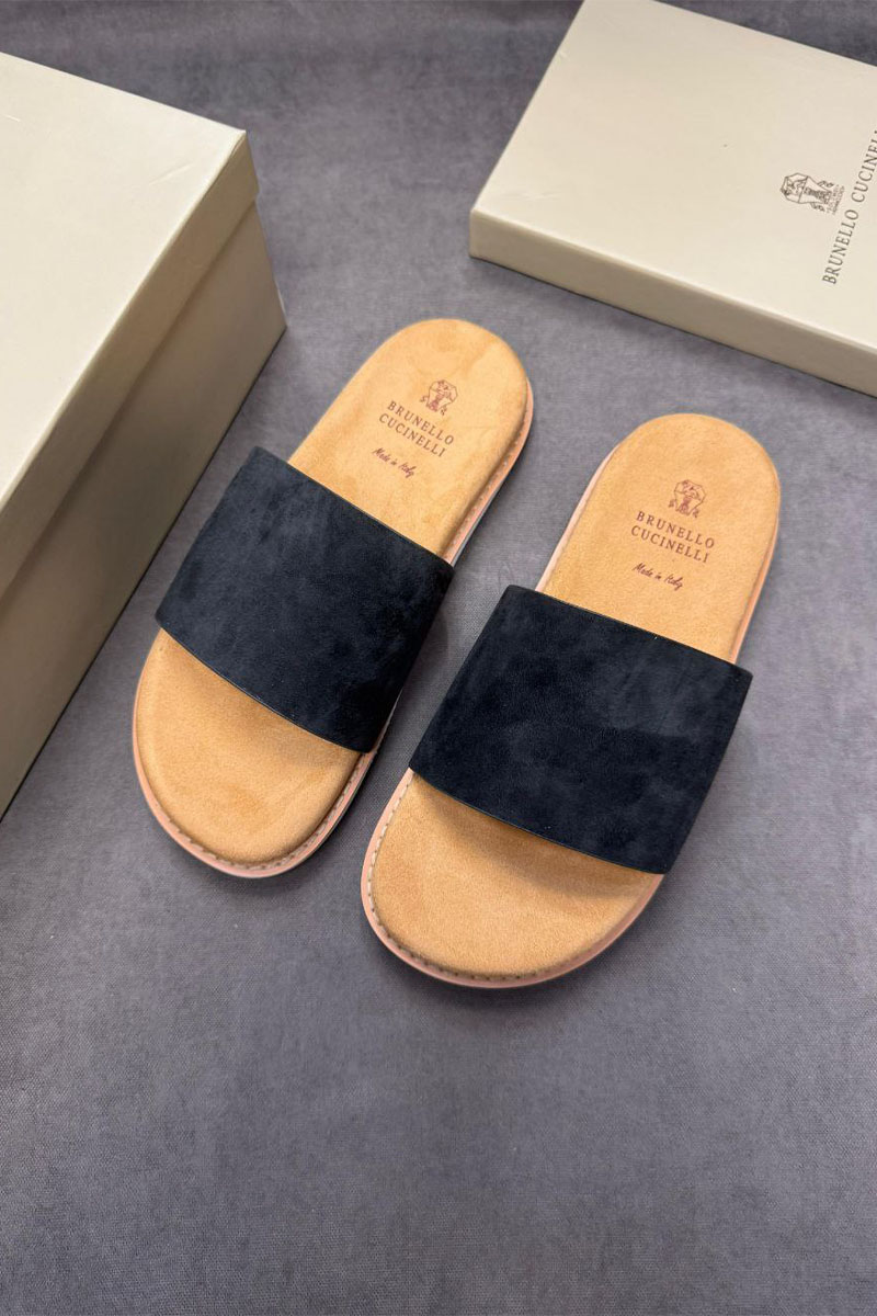 Замшевые шлёпанцы Brunello Cucinelli серого цвета