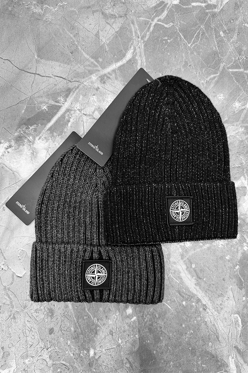 Чёрная шапка Stone Island compass-patch