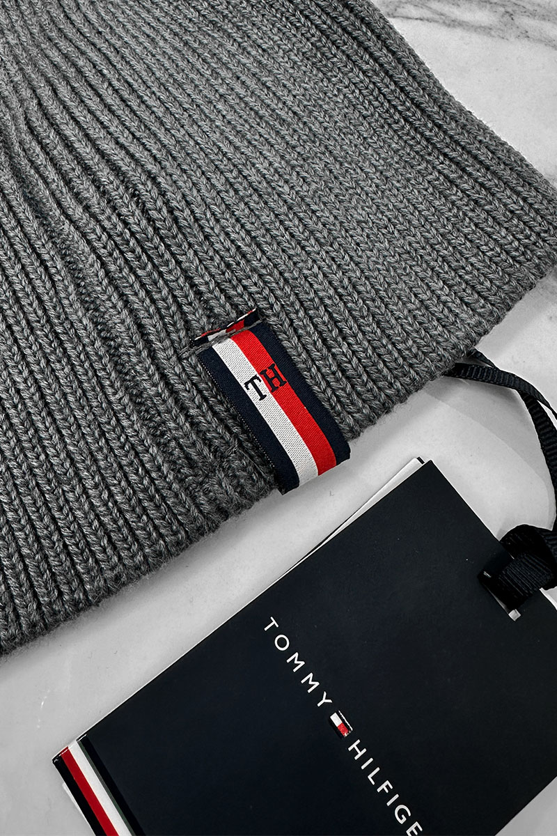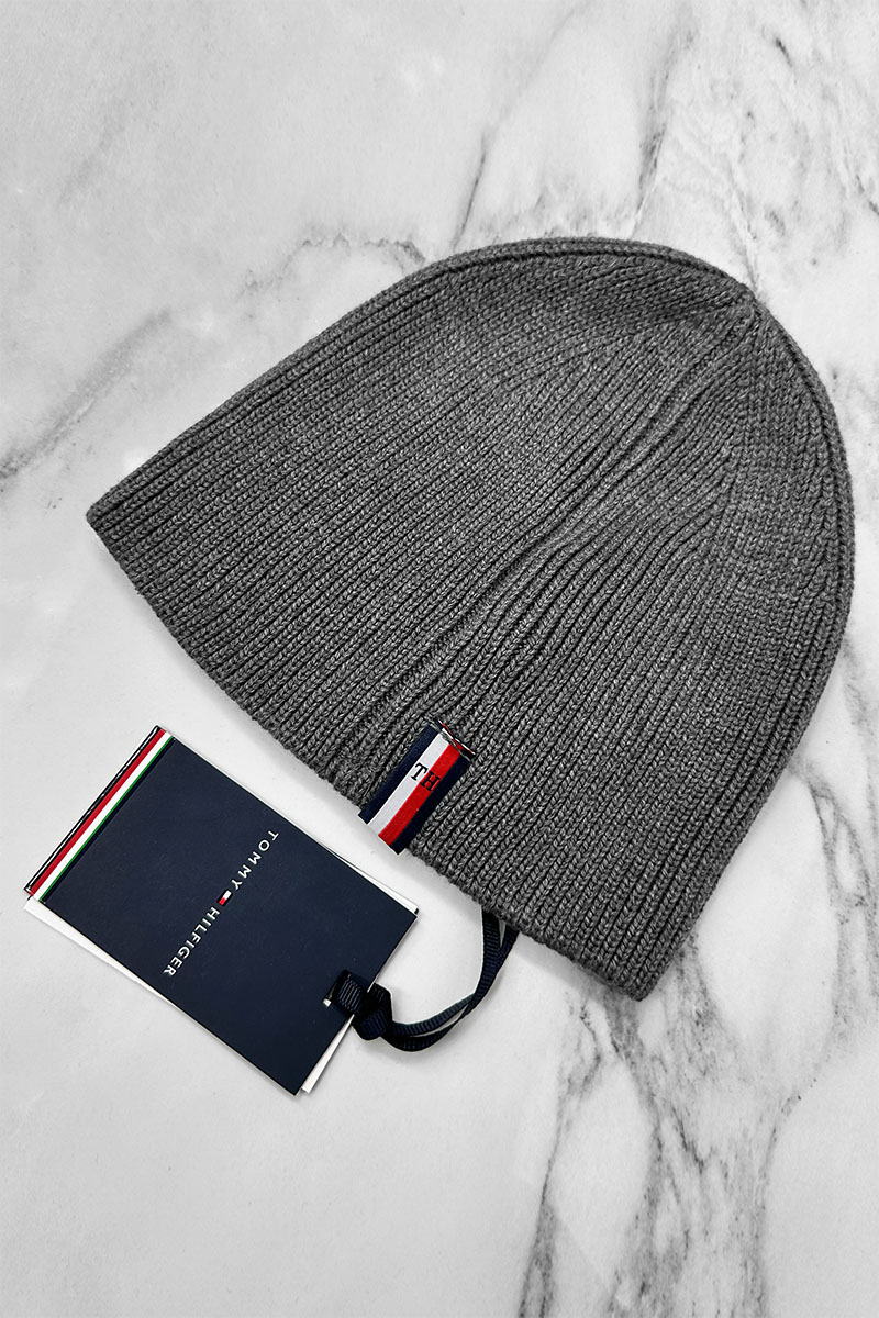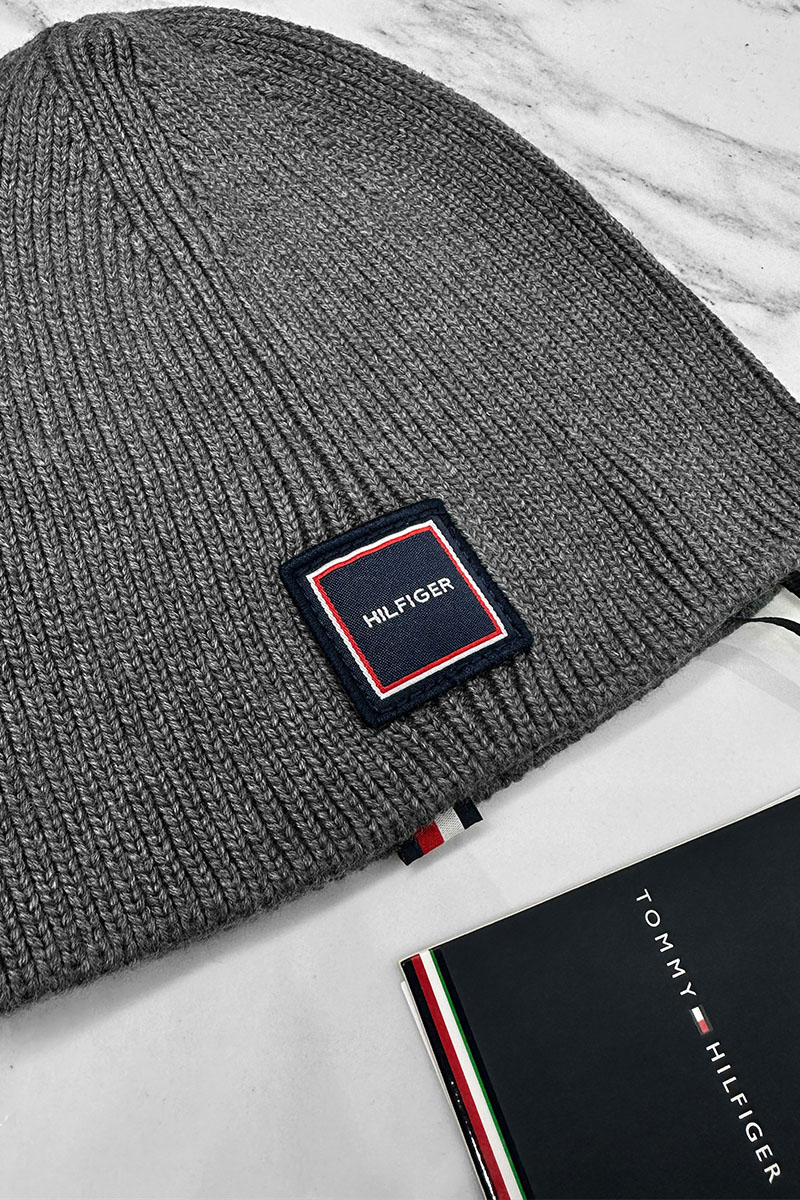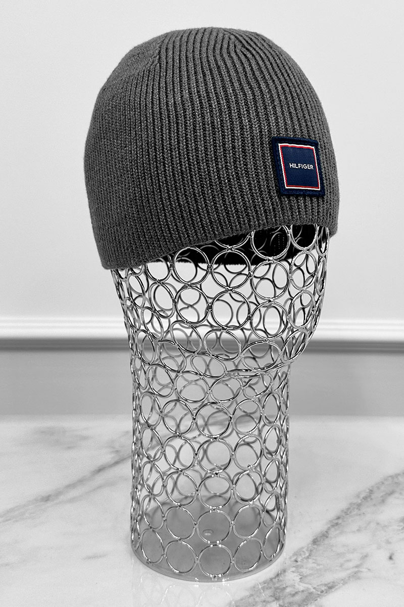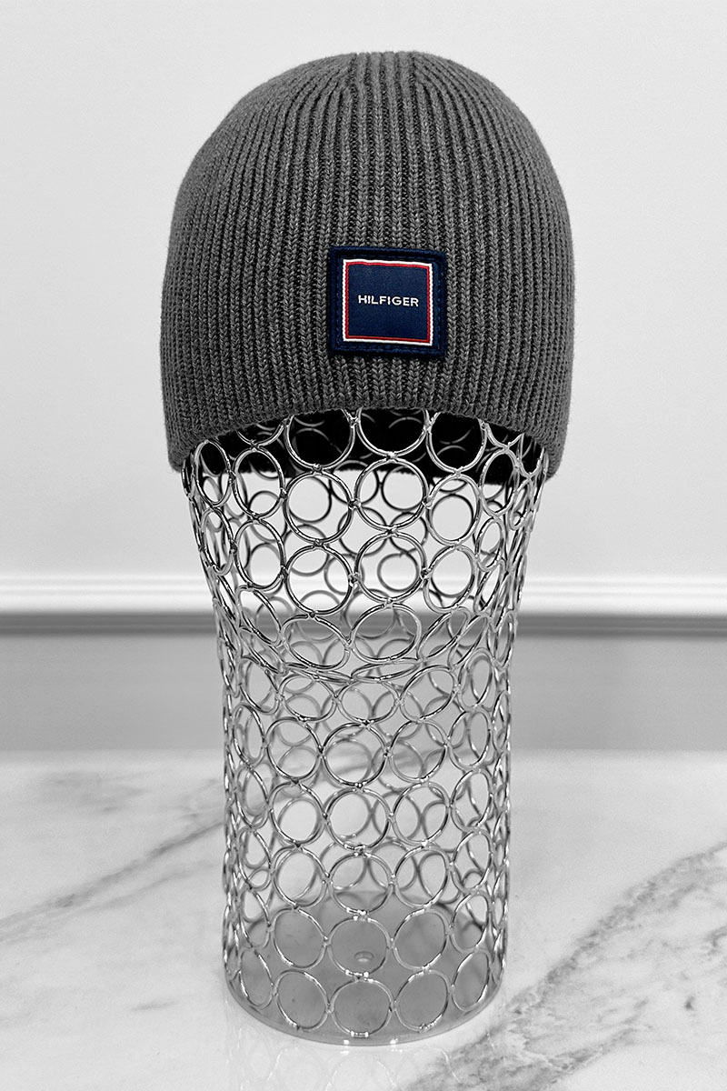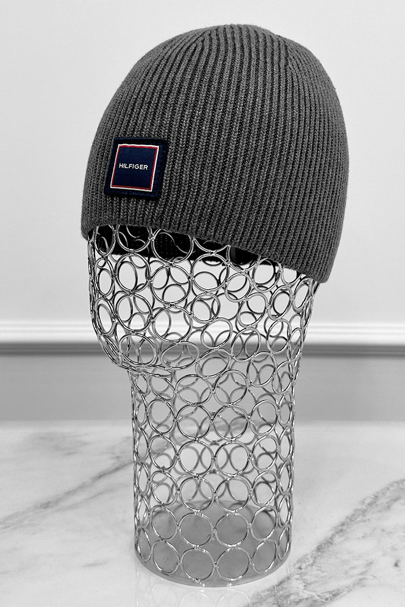 Мужская серая шапка Tommy Hilfiger logo-patch