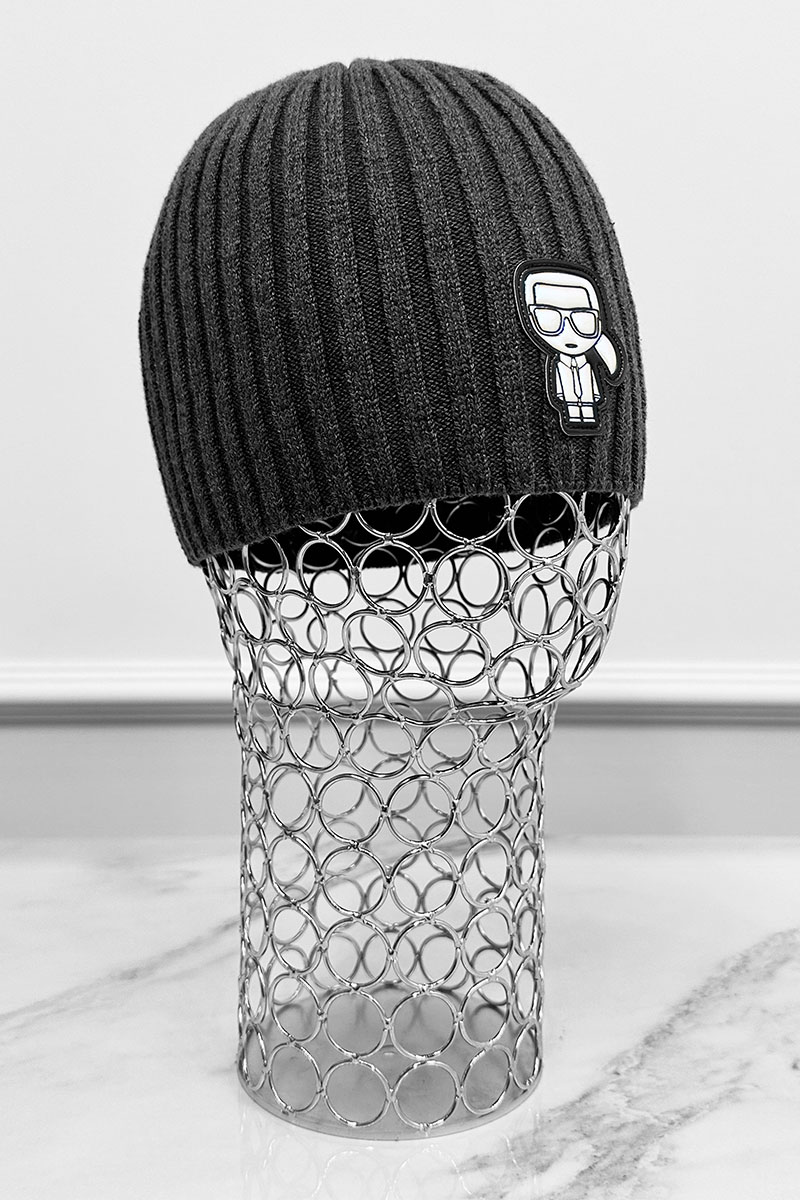 Мужская шапка серого цвета Karl Lagerfeld logo-patch