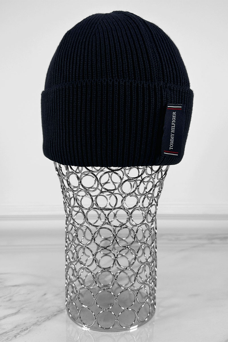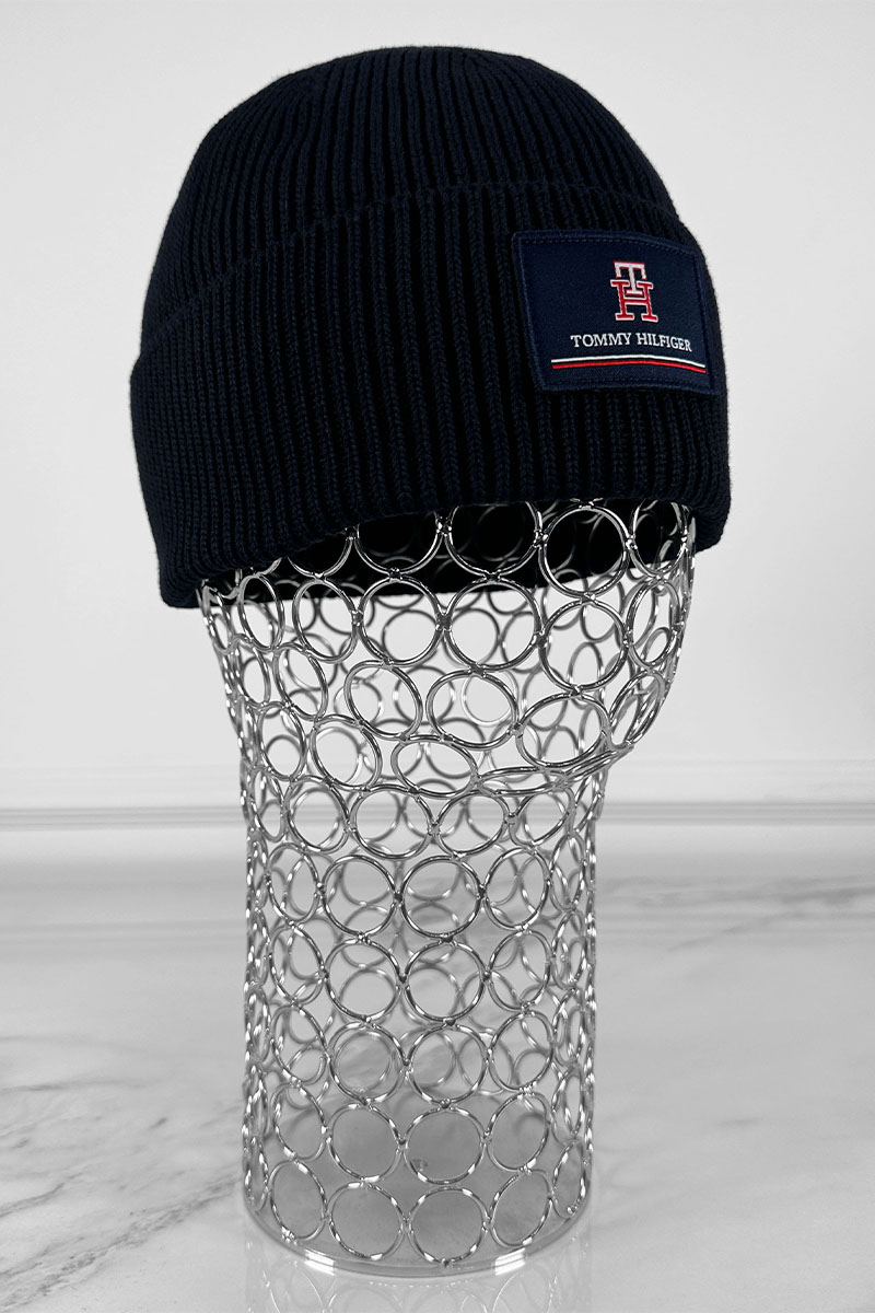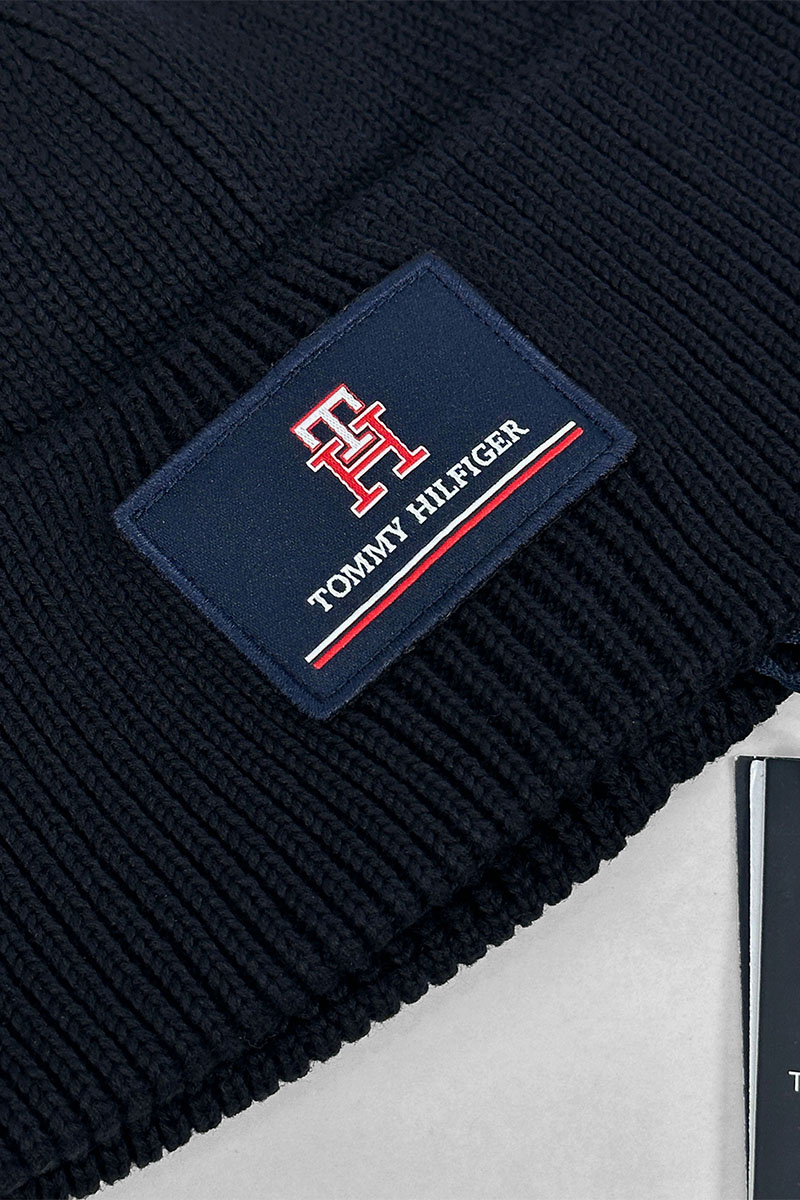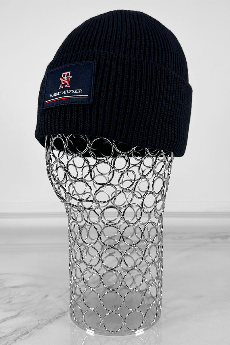 Мужская тёмно-синяя шапка Tommy Hilfiger logo-patch