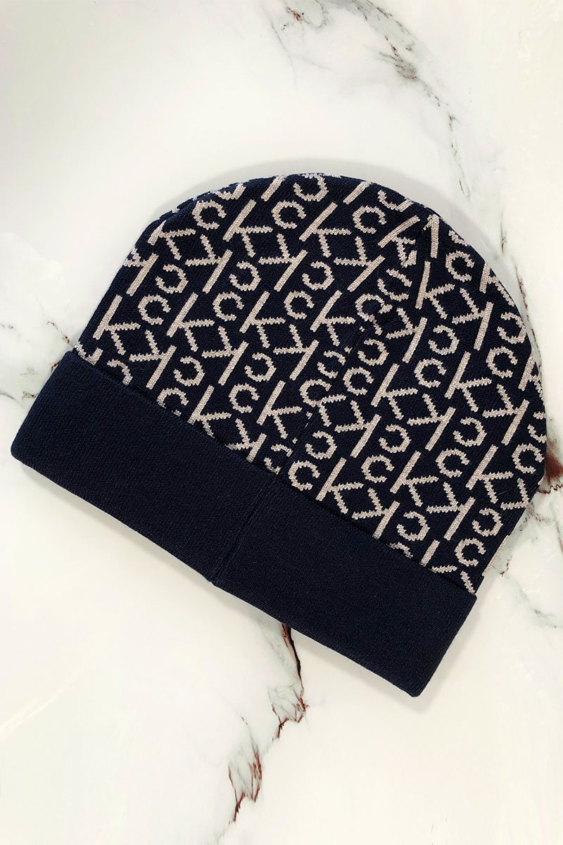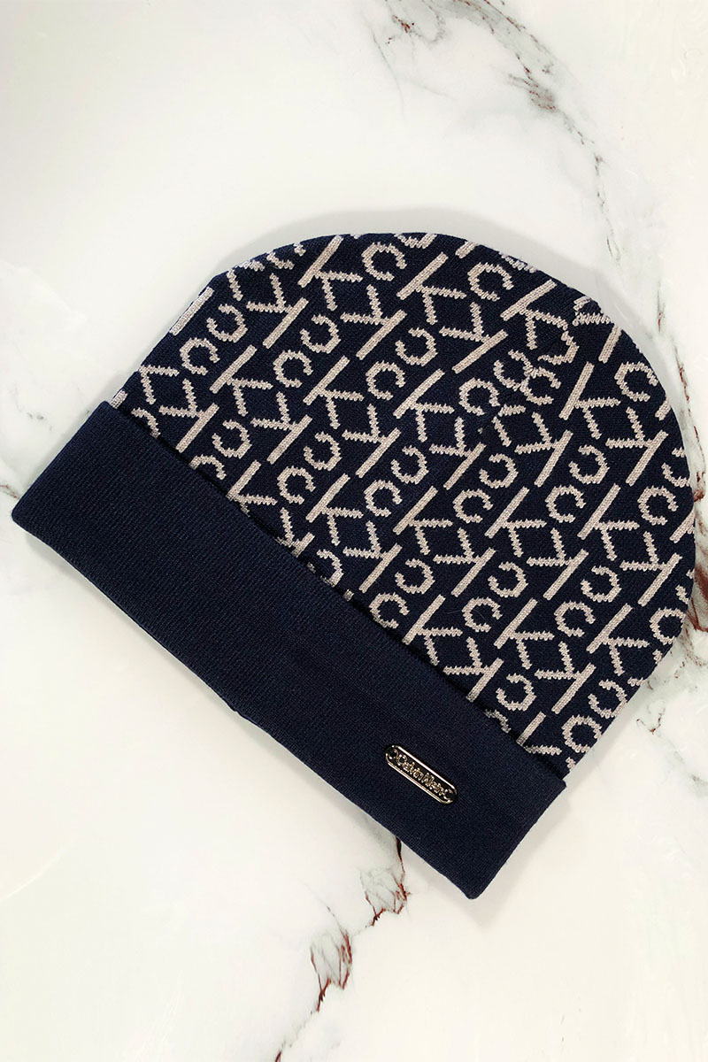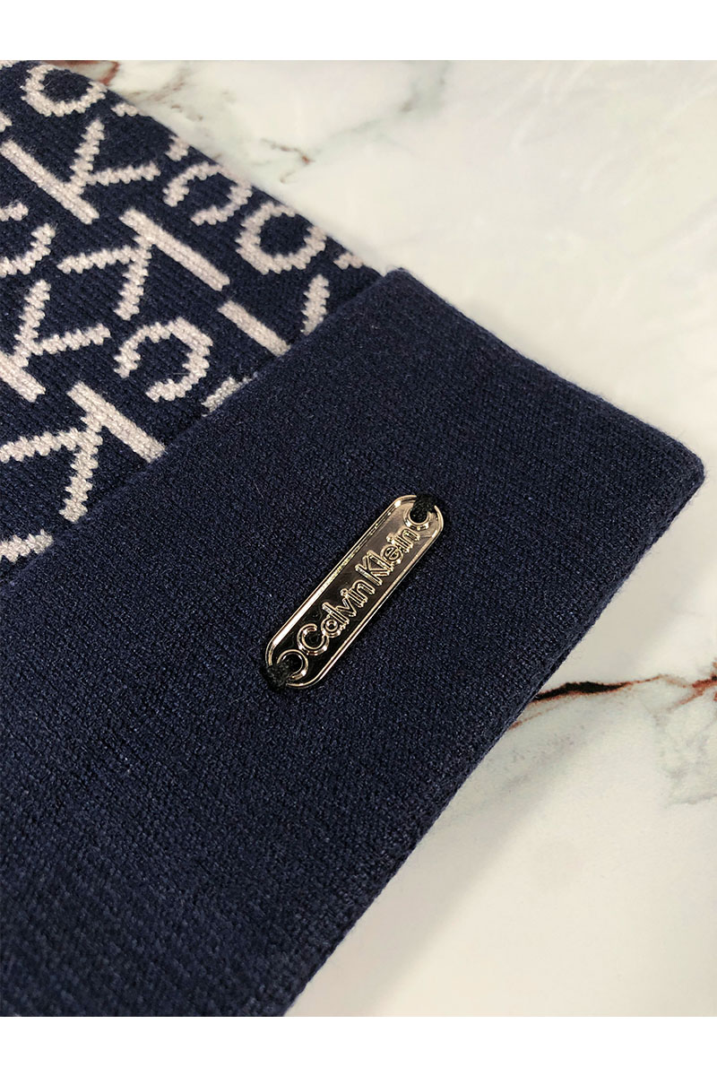 Мужская тёмно-синяя шапка Calvin Klein logo-plaque