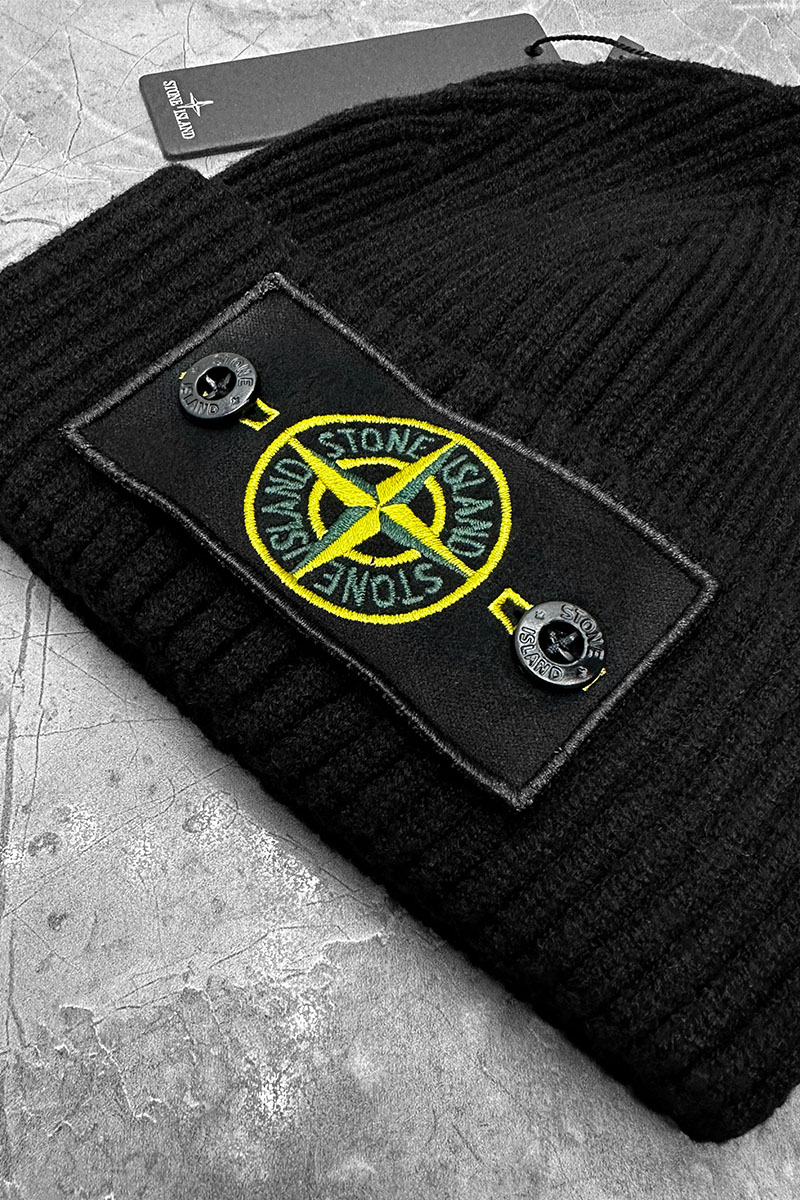 Шапка чёрного цвета Stone Island compass patch