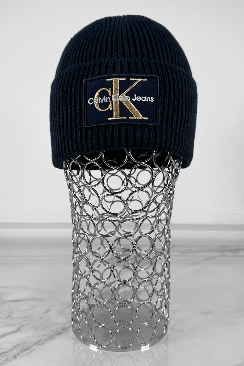 Тёмно-синяя шапка Calvin Klein Jeans monologo patch