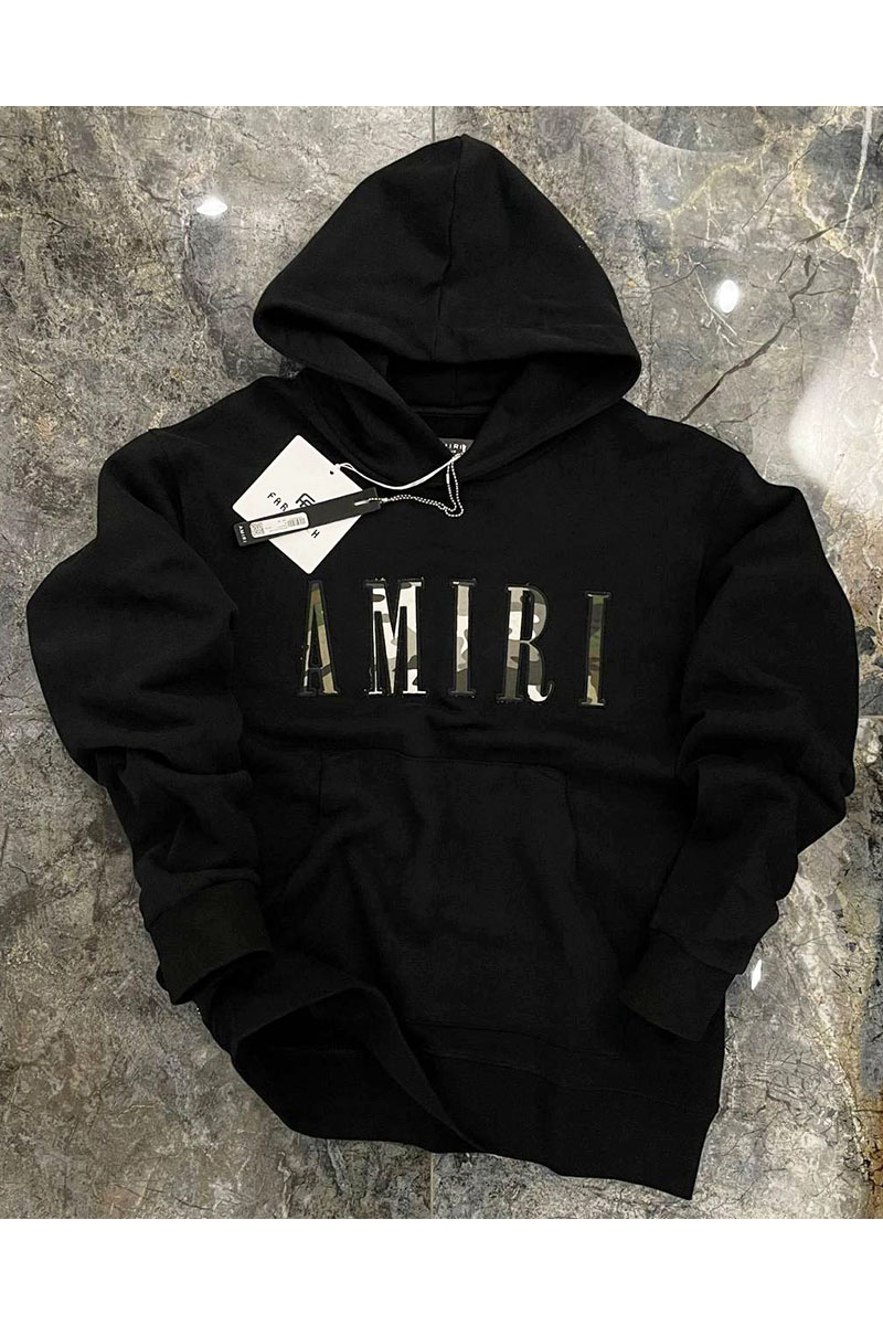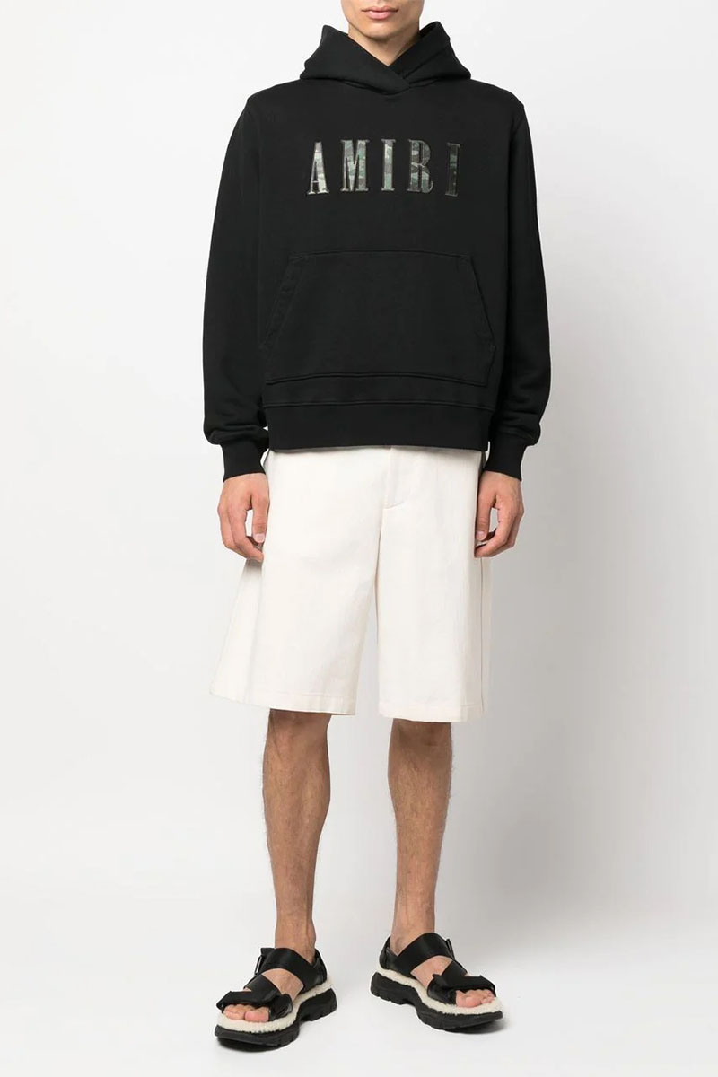 Чёрное оверсайз худи Amiri camo embroidered logo
