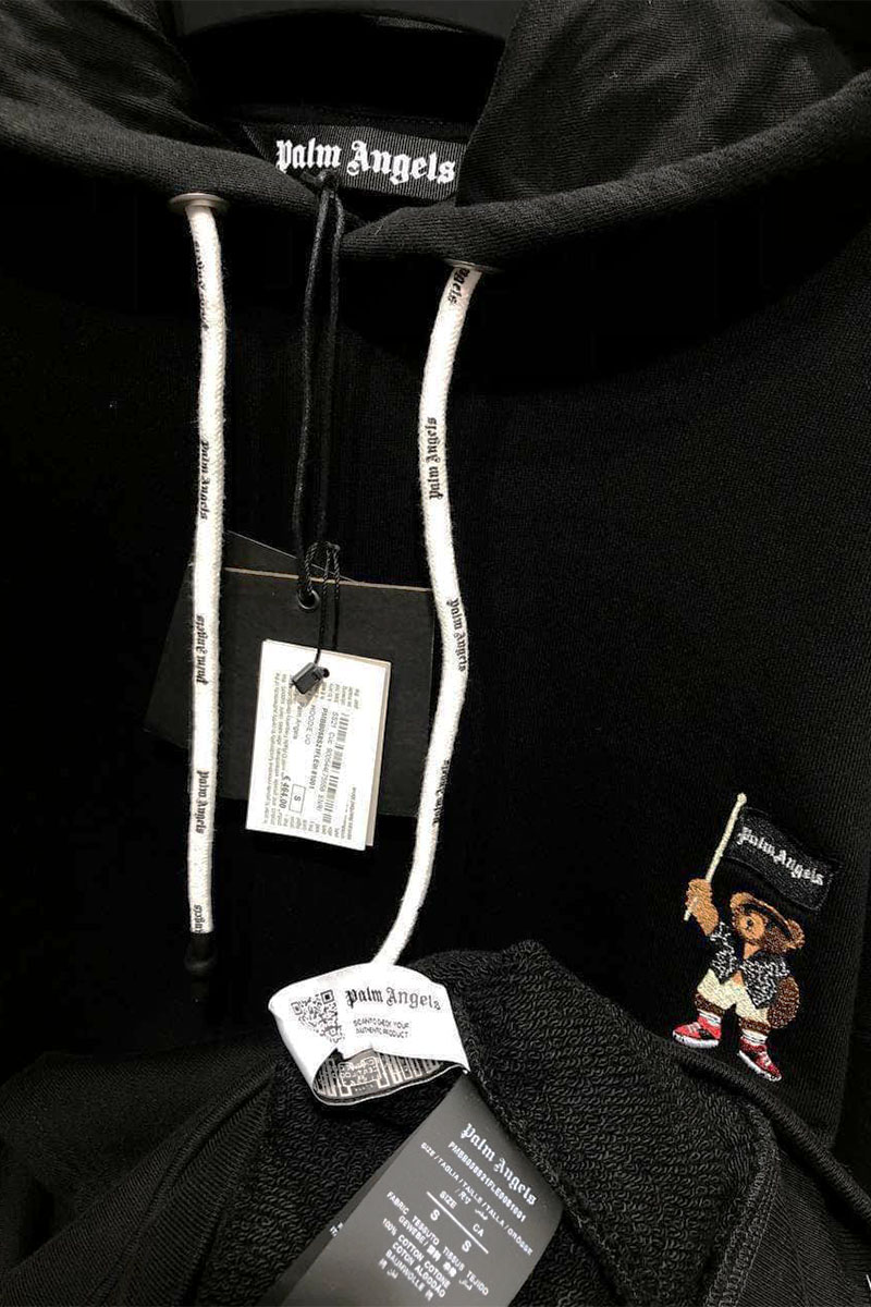 Утеплённое оверсайз худи Palm Angels "Pirate Bear" - Black