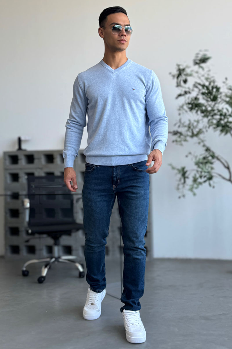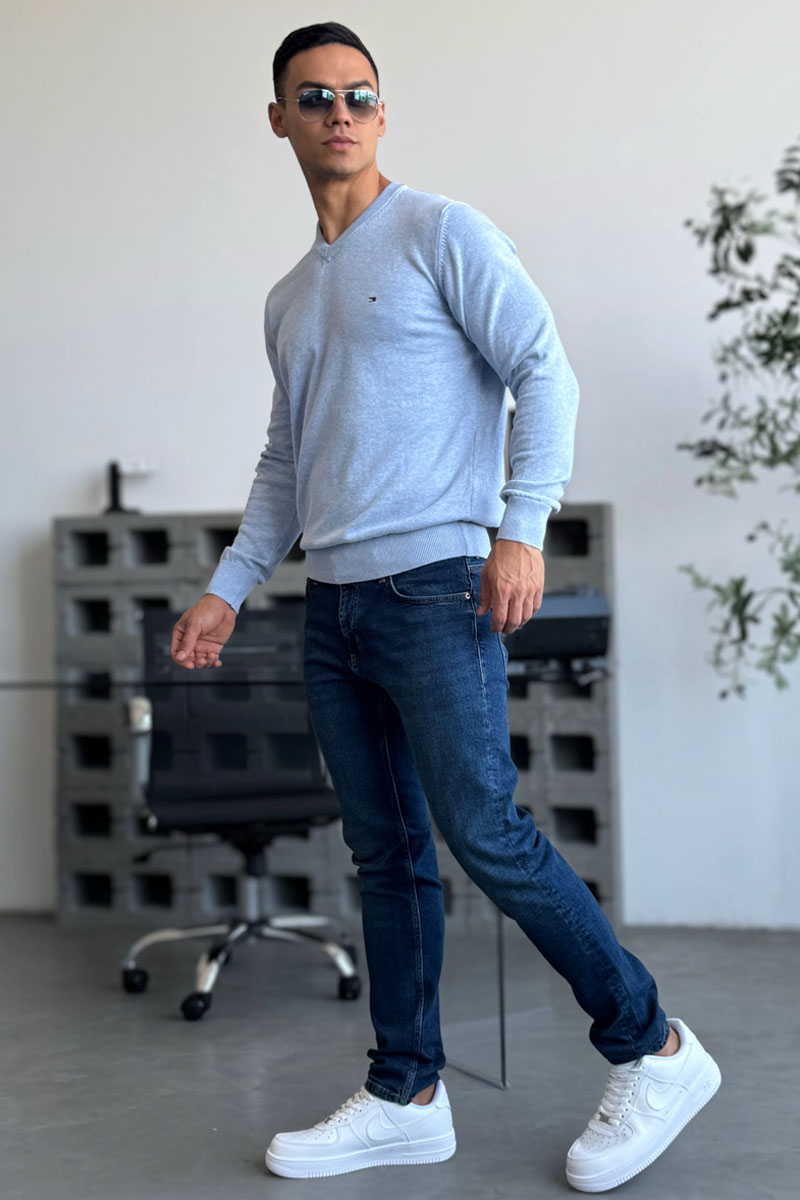 Мужской джемпер Tommy Hilfiger logo-embroidered - Blue