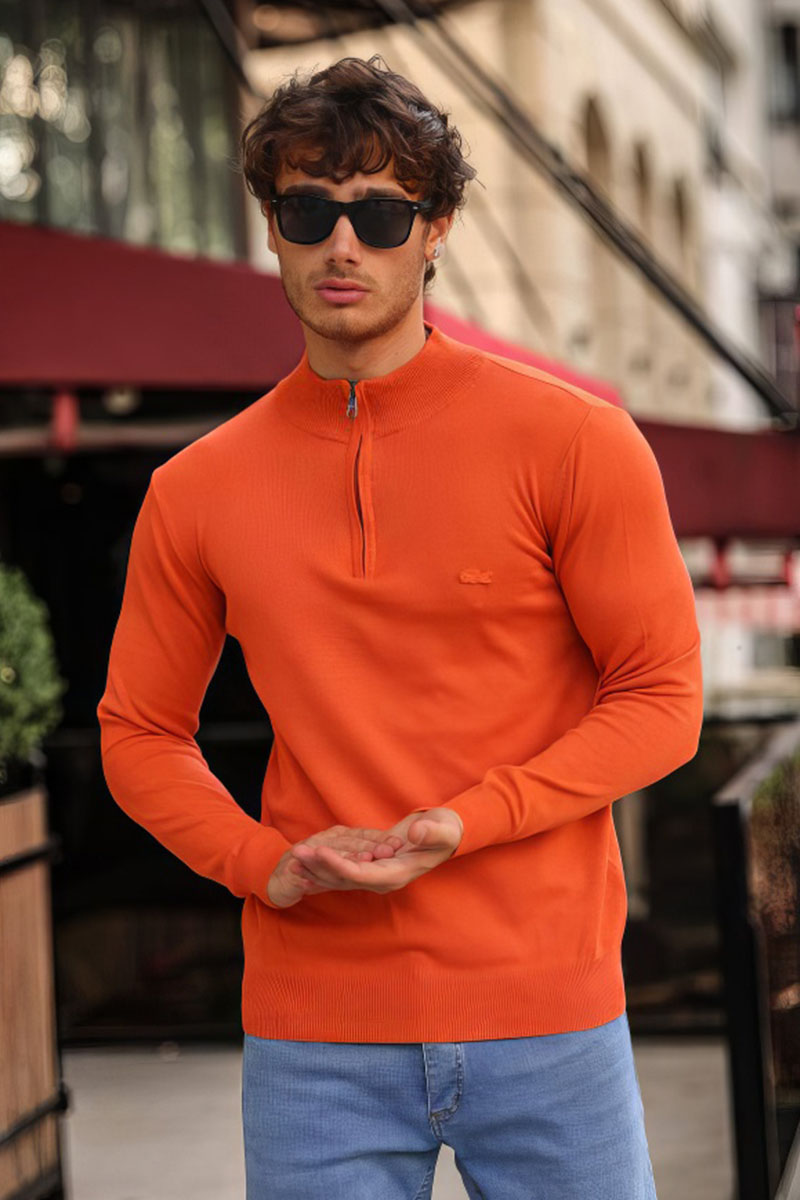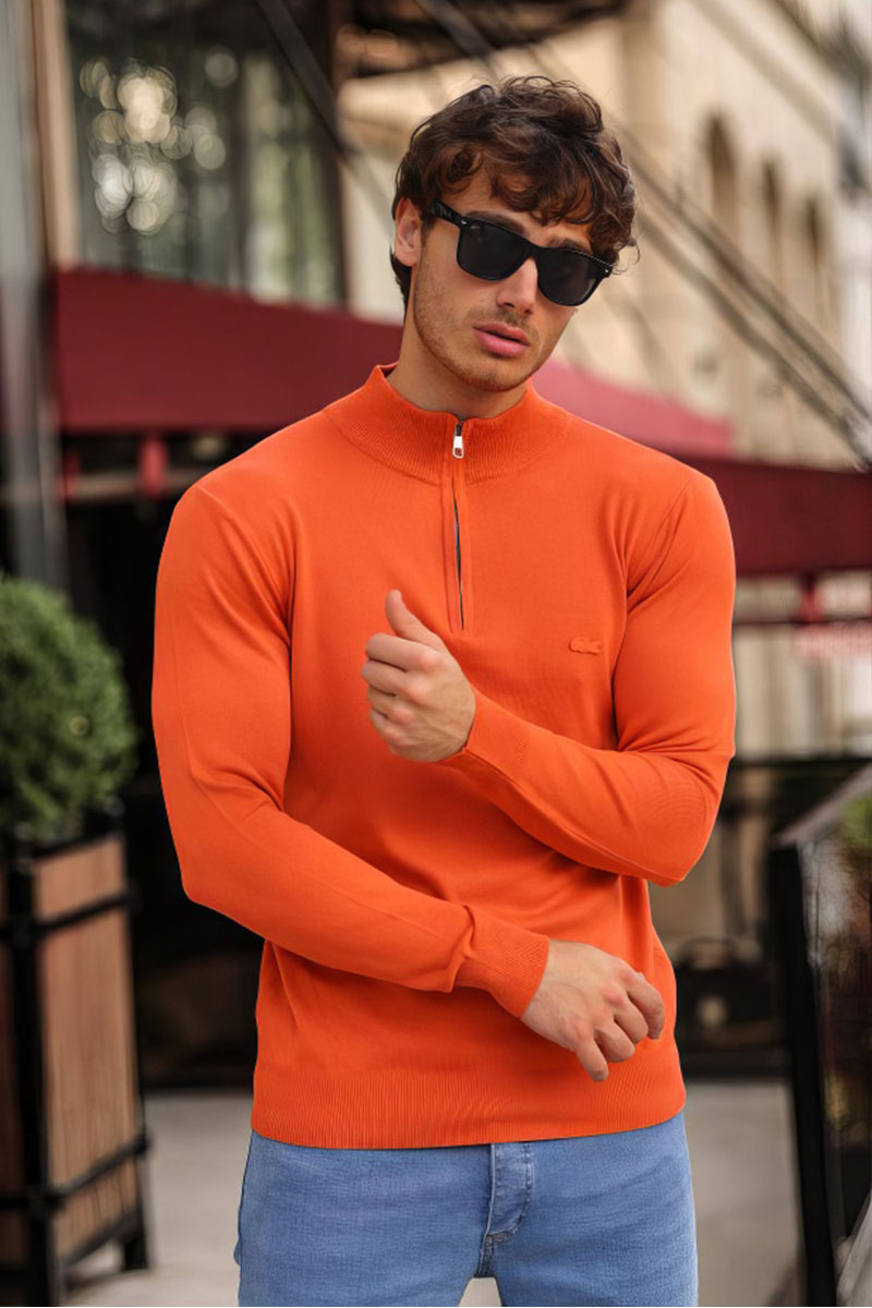 Мужской оранжевый джемпер Lacoste Zip Neck