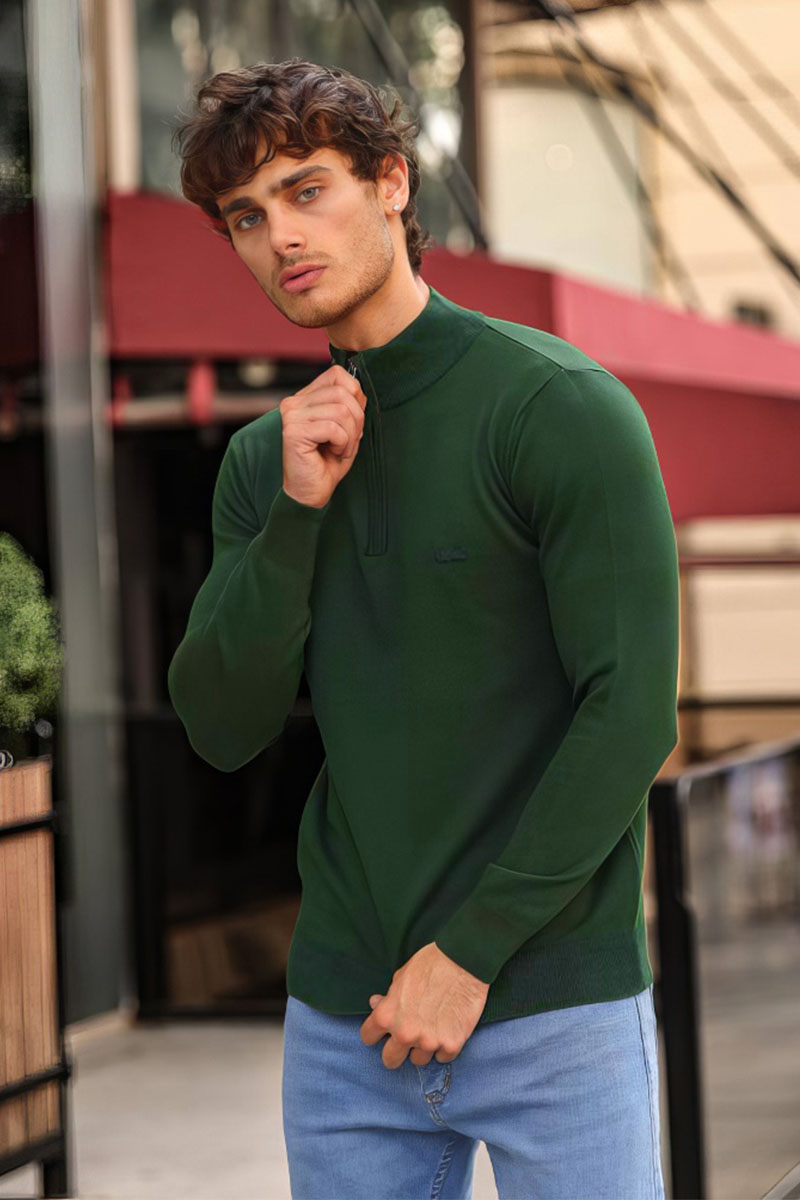 Мужской зелёный джемпер Lacoste Zip Neck